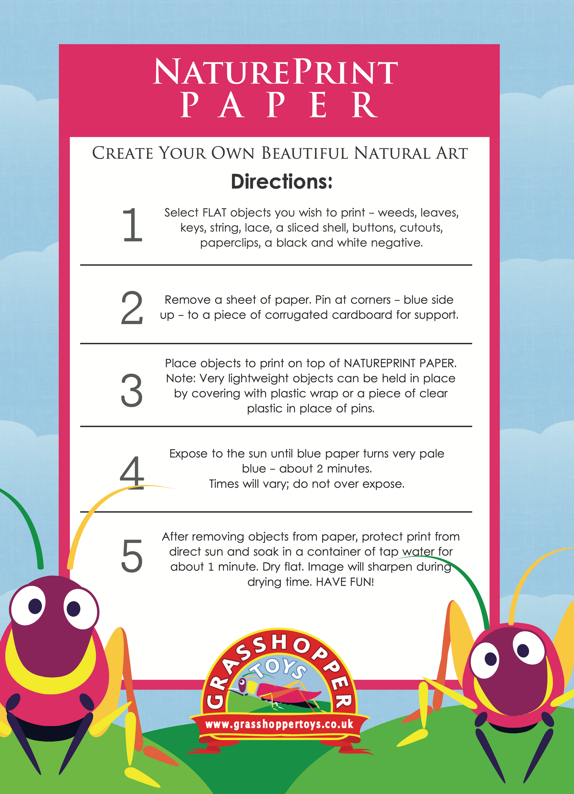 Each pack contains 10 x sheets 18x13cm of light sensitive sun print paper.