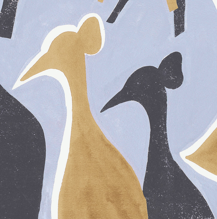 This unique wallpaper design is a celebration of European Mid-Century style, featuring a charming hand painted novelty print that showcases spirited shadow animal motifs. The playful cutout shapes add a whimsical touch to any room and create a calming backdrop that's perfect for a nursery or study.