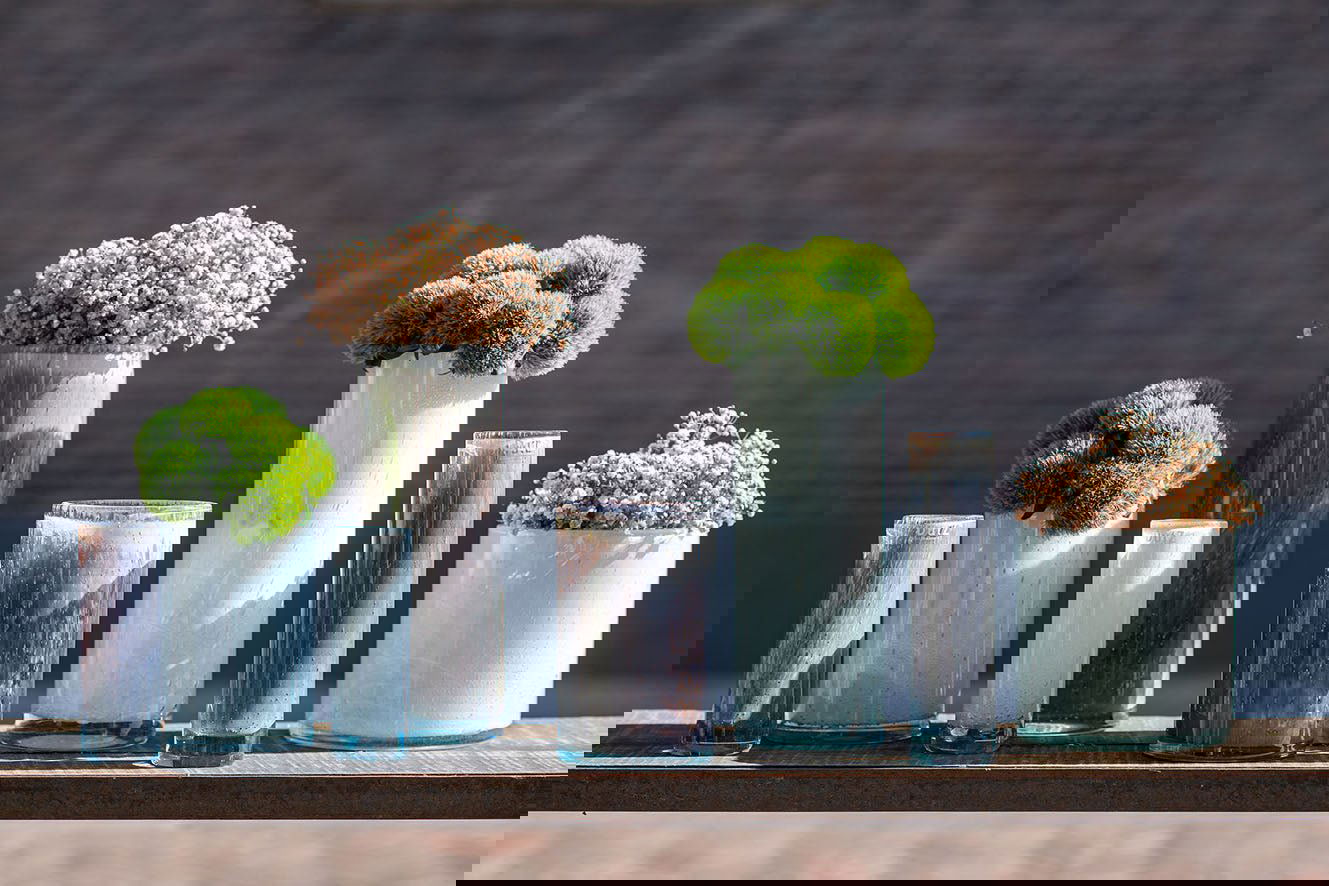 CYLINDER VASES: The cylinder is a classic multifunctional design and can be used to fill with a just a few flower stems. Or use a combination of cylinders in various sizes and colours to create a very decorative display. That way, you can spread out a bouquet on a table or windows sill. This creates a very beautiful and stylish floral effect