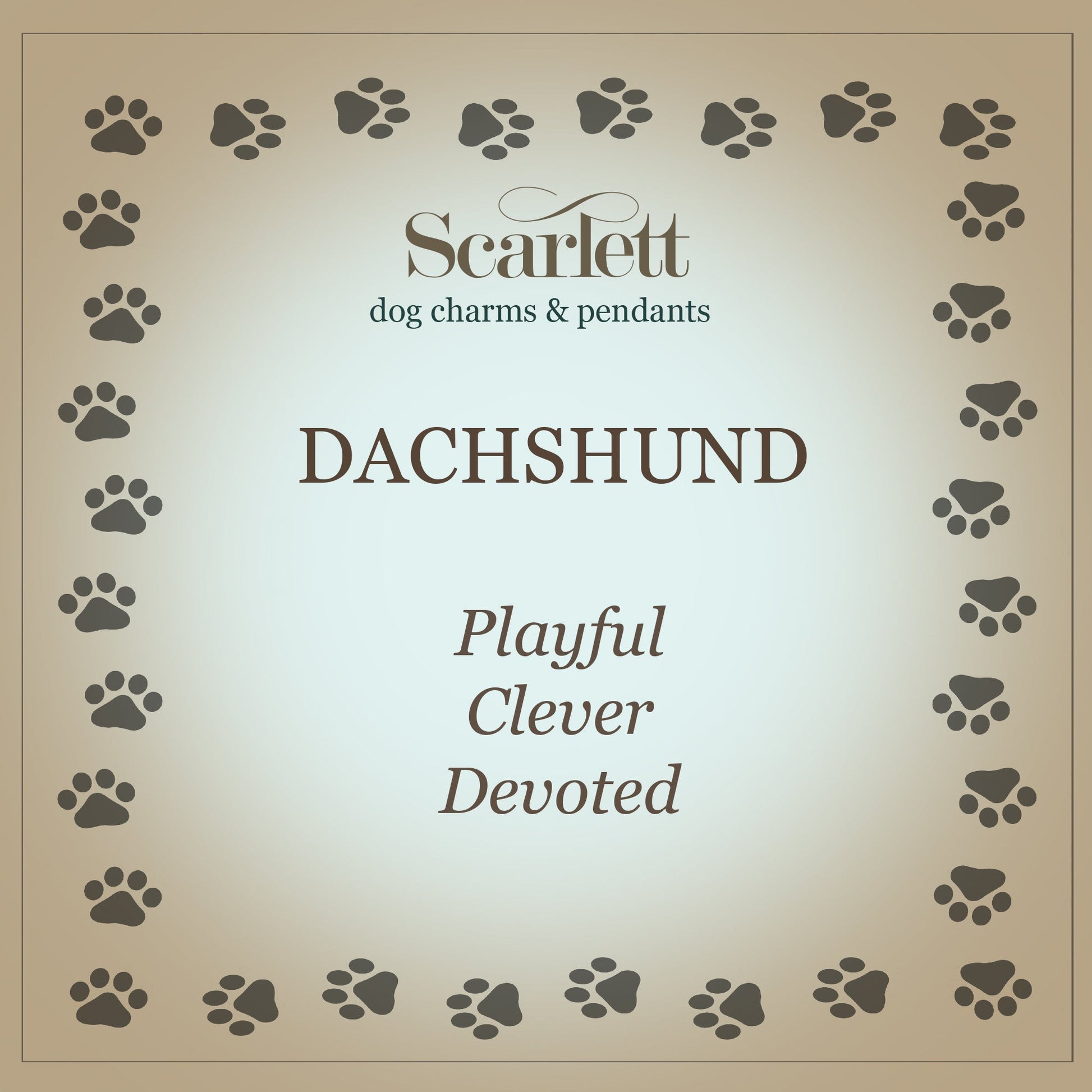 Our sausage dog charm embodies all the things we love about these popular breed of small dog. The meaning card that comes with each charm celebrates the Dachshund's best known qualities: playful, clever & devoted