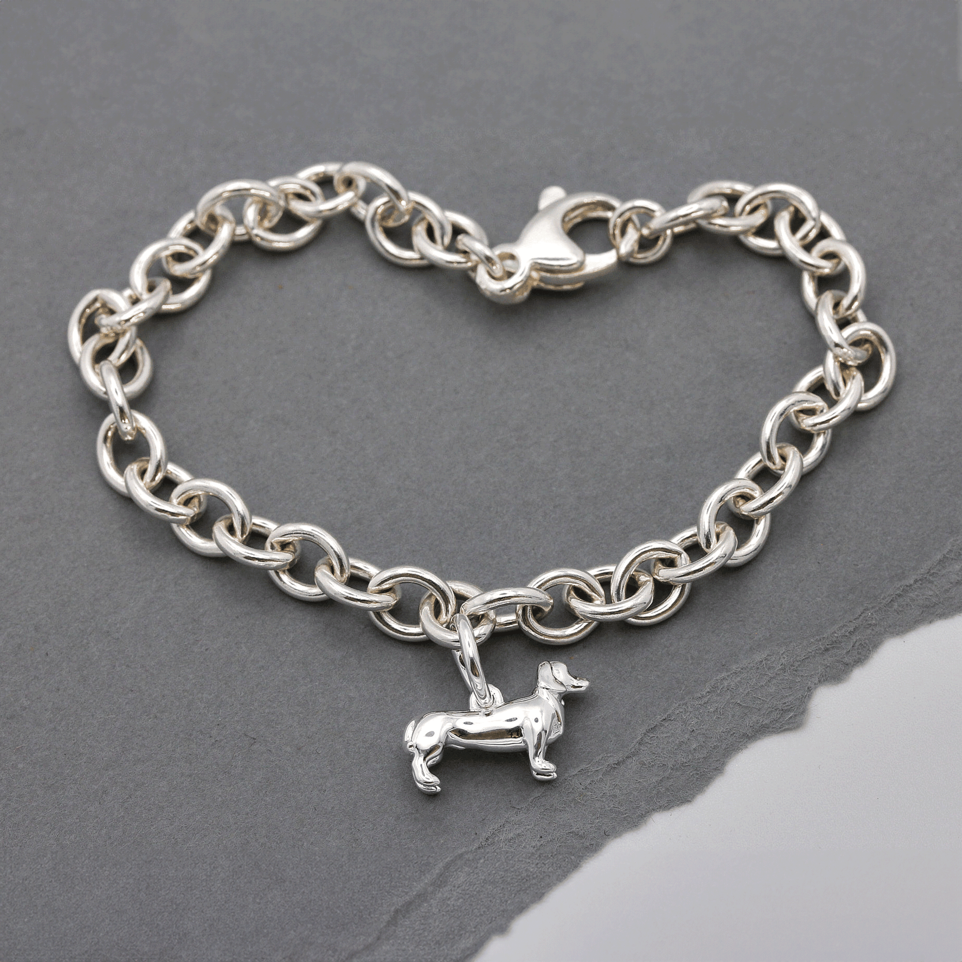 - As a finished sausage dog charm bracelet, we’ll hand make & securely solder your dog charm to the centre of our best selling Mini Lifetime bracelet - at 7.5” long it’s an adjustable starter charm bracelet to begin your collection. An 8" bracelet is also available on request - please allow an extra day for us to make longer bracelets.