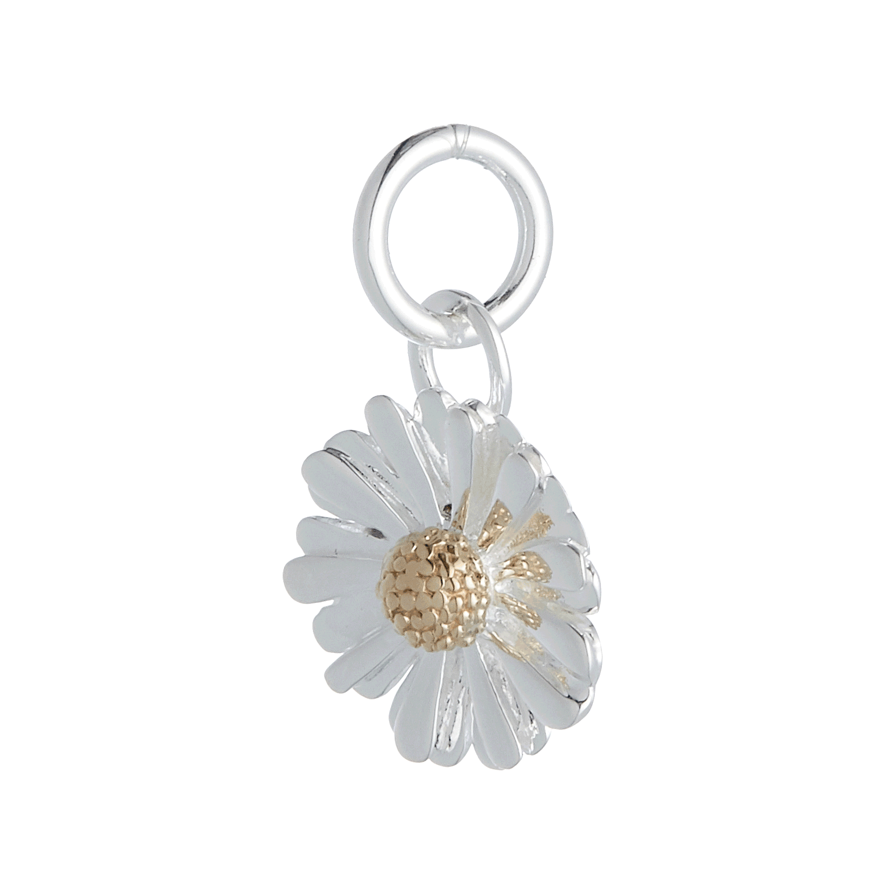 - Silver daisy charm with 9ct gold centre: 14mm wide x 14.5mm high (excluding jump ring)