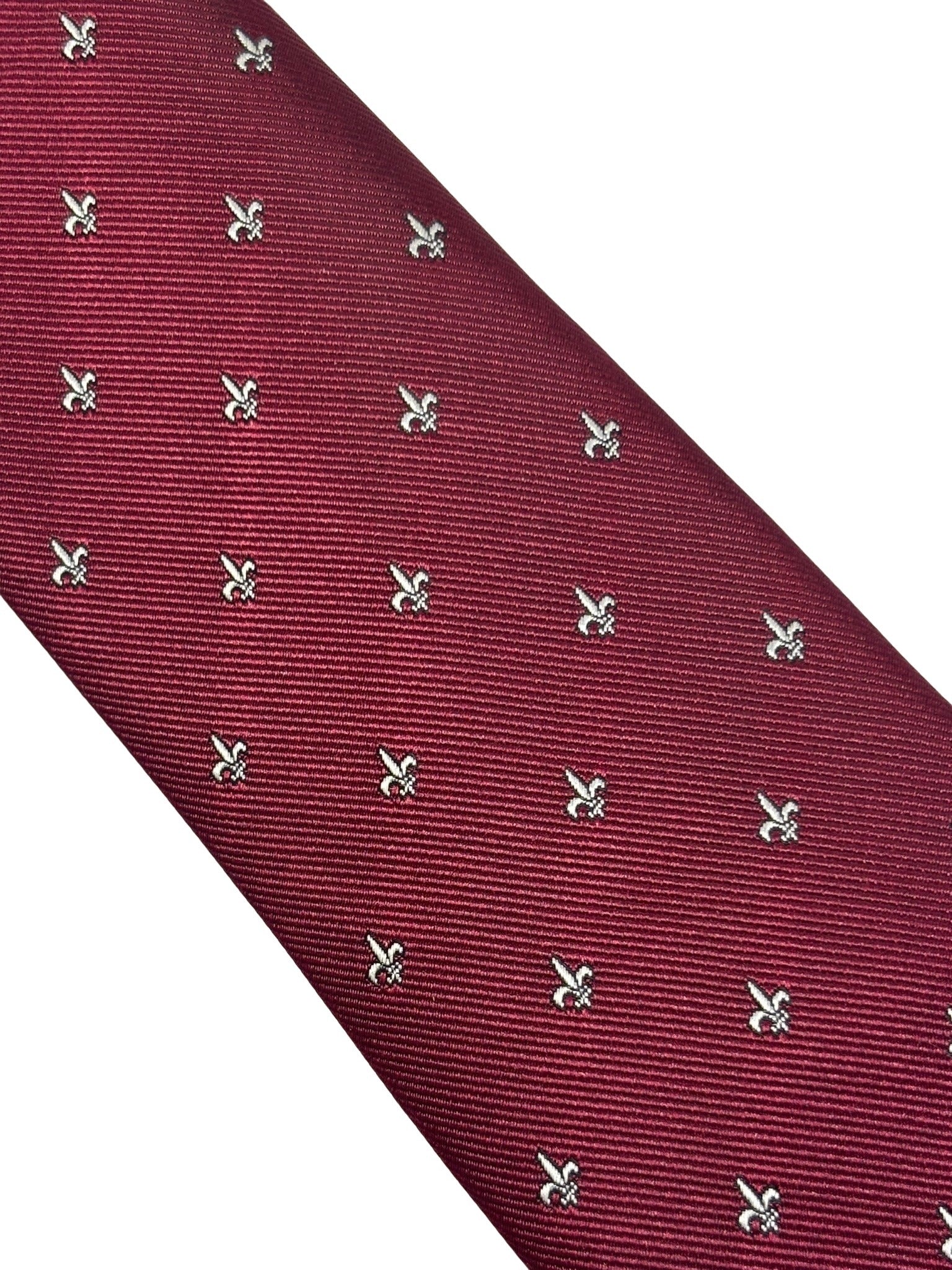 dark burgundy maroon red men's tie with fleur de lis lys design