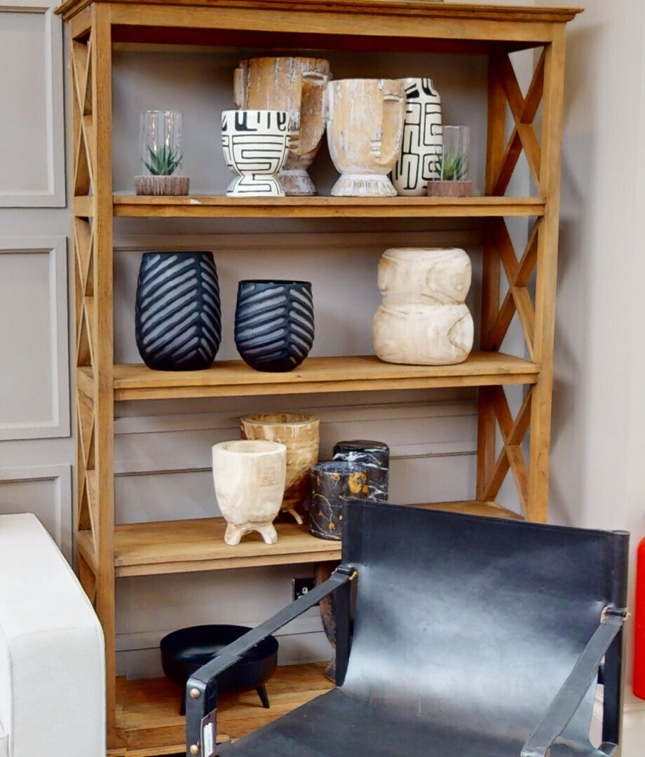 - Natural finish pairs with stone, timber, and woven accents.