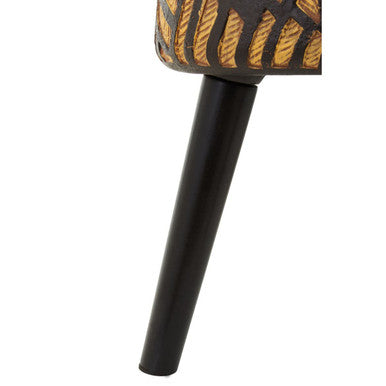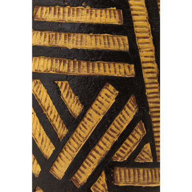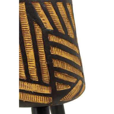 Made from magnesia fibreglass, this planter features a hand painted geometric motif in muted natural and black tones, giving the design warmth and texture. The planter is supported by three sturdy black beech wood legs which are angled for stability.