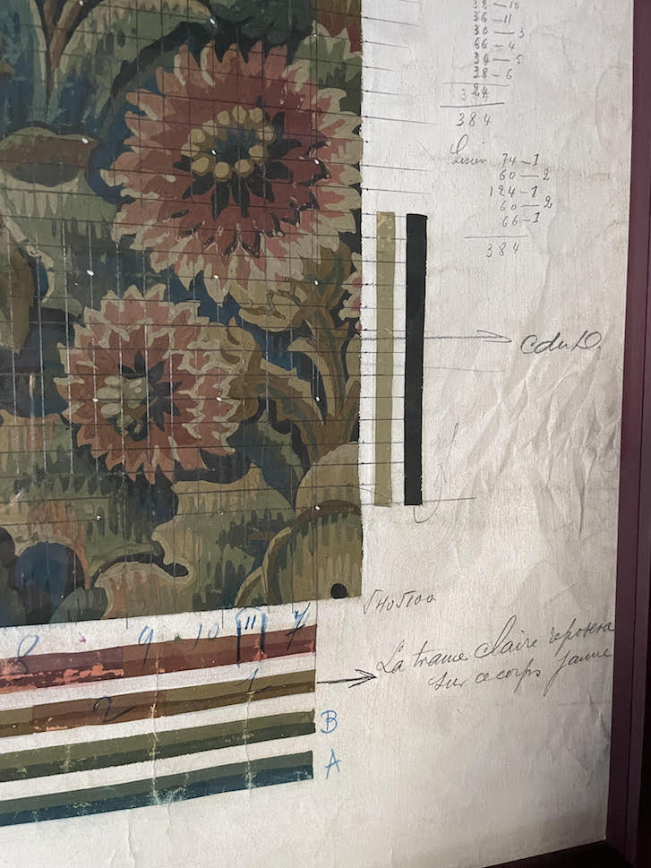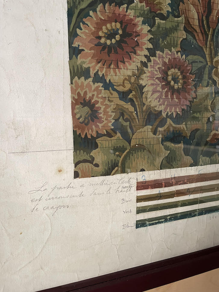 This exquisite floral artwork, originating from 25th January 1905, was originally crafted by Flemish weavers Felix Vanoutryve, renowned for their prominent upholstery fabric manufacture in Belgium. Serving as a template for textile weaving, designers meticulously painted this piece using gouache, embellishing it with intricate maker's marks and grids. Its purpose was to be transformed into luxurious tapestry fabrics for furnishing and enhancing interior spaces.