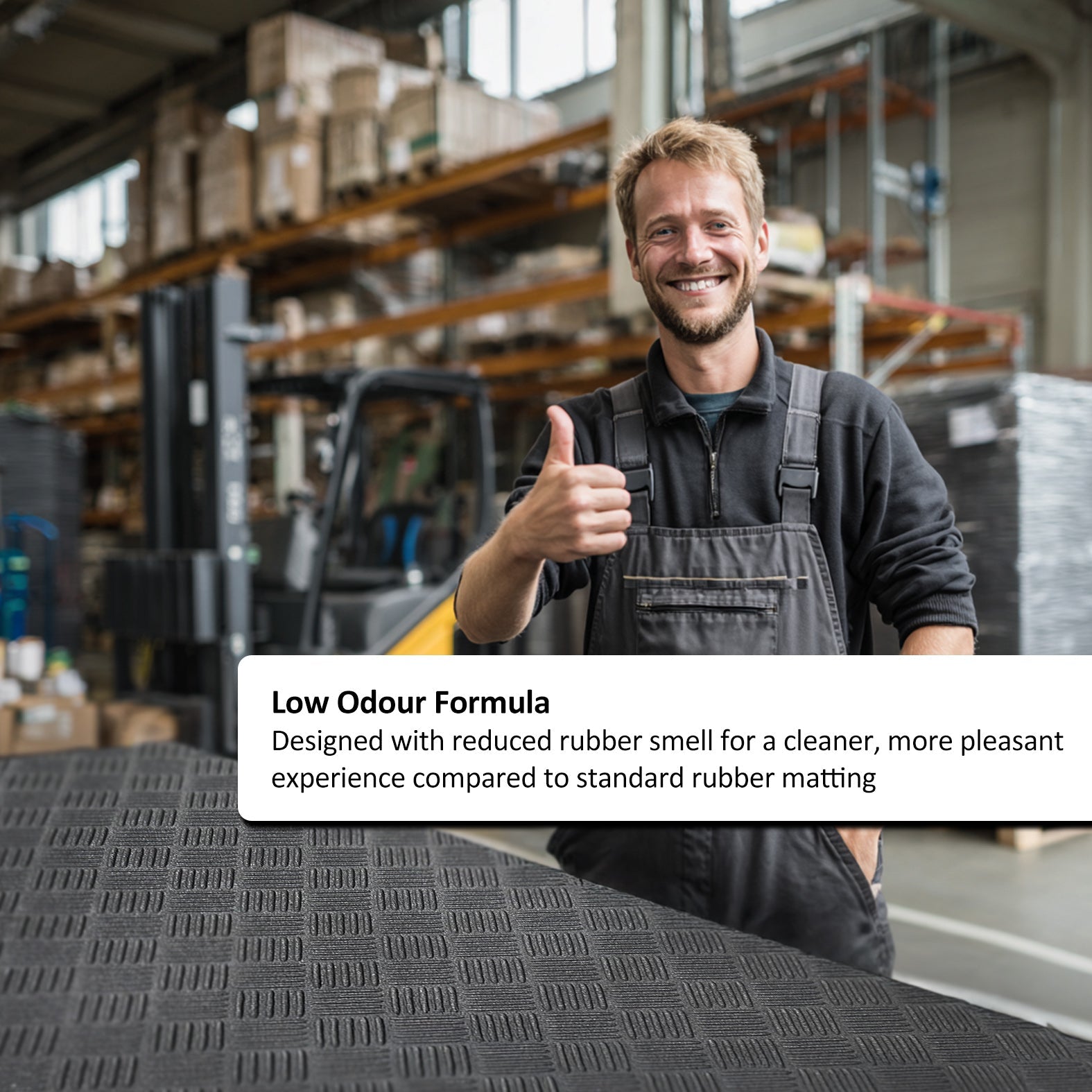 Low Odour: Minimal rubber smell compared to many other rubber mats.