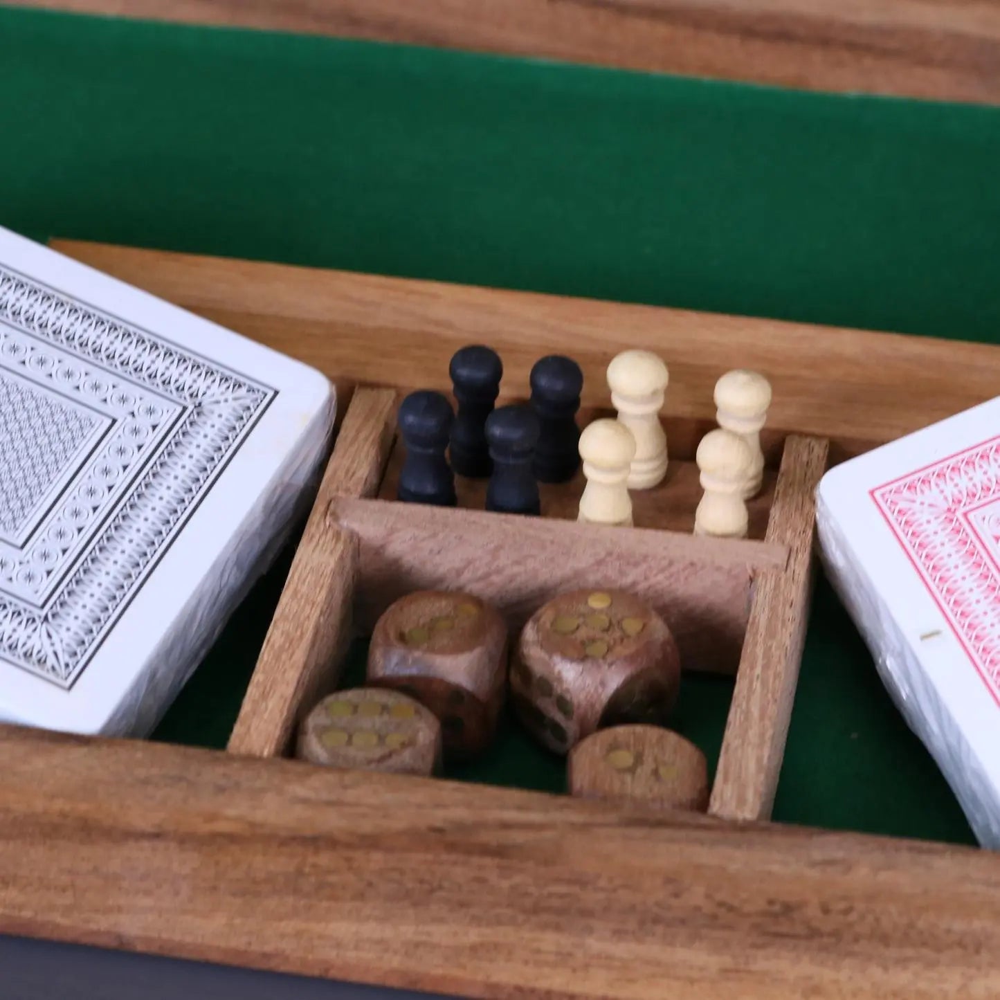 | Set includes: | 2 Decks of cards, 8 Pegs, 4 Dice and Wooden box with cribbage board |