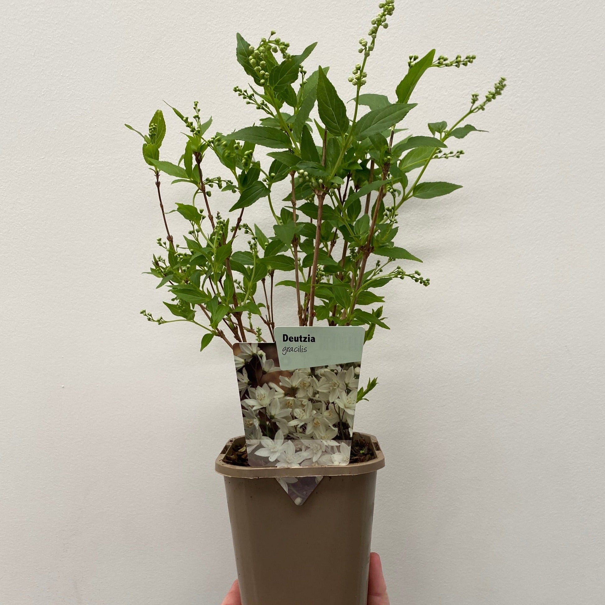 Deutzia gracilis is a charming, compact deciduous shrub that stands out for its abundant clusters of white, star-shaped flowers that bloom in late spring to early summer. The delicate blossoms, often tinged with a hint of pink, create a stunning display against the dark green, slender foliage. This variety is perfect for small gardens, borders, or container planting, adding a soft, romantic touch to any space. Known for its hardiness and low-maintenance nature, Deutzia gracilis thrives in a variety of conditions, making it a reliable and beautiful addition to any garden.