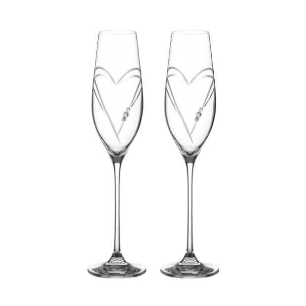 Diamante Champagne Flutes with Heart Shaped Cutting - In Gift Box