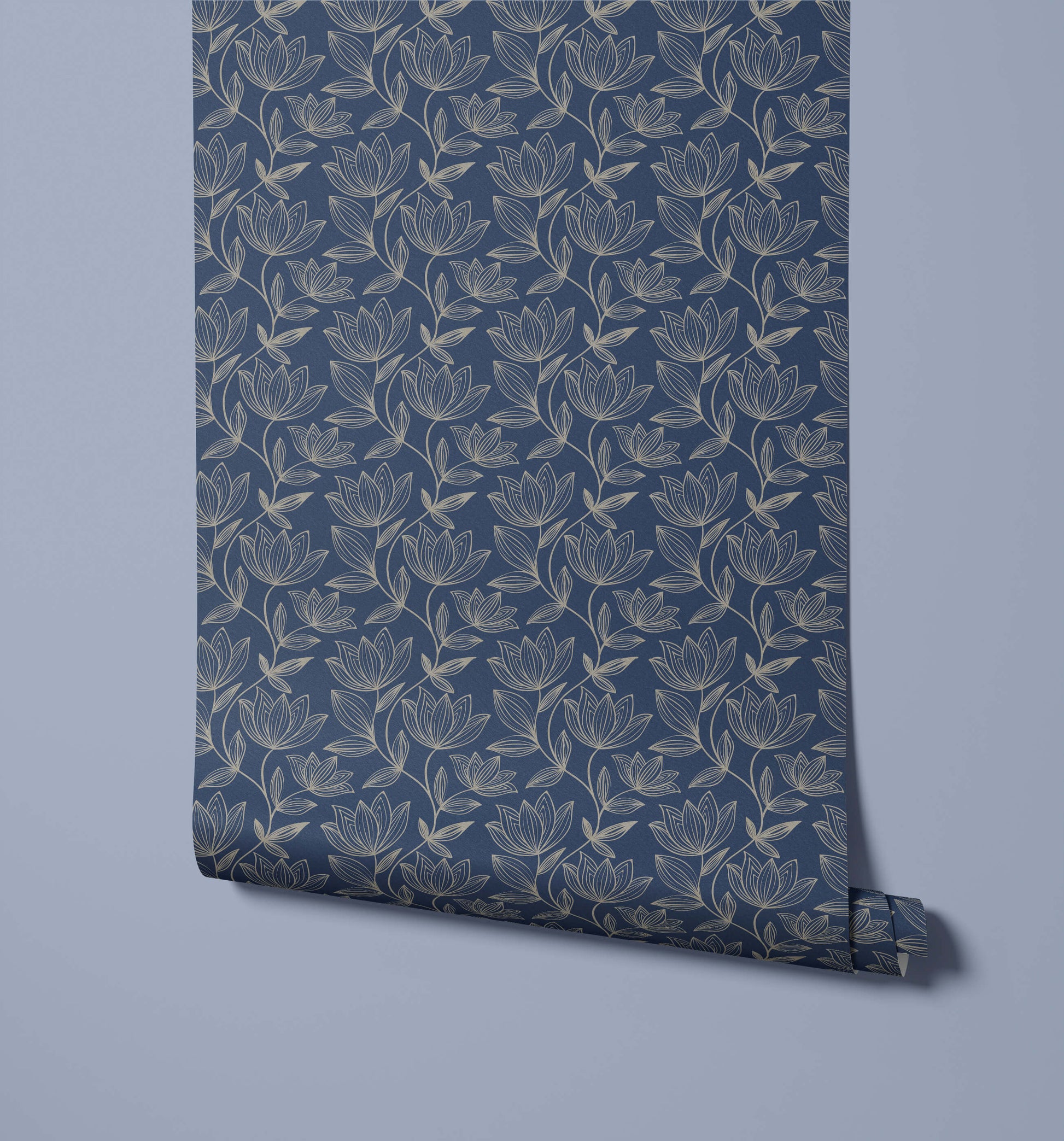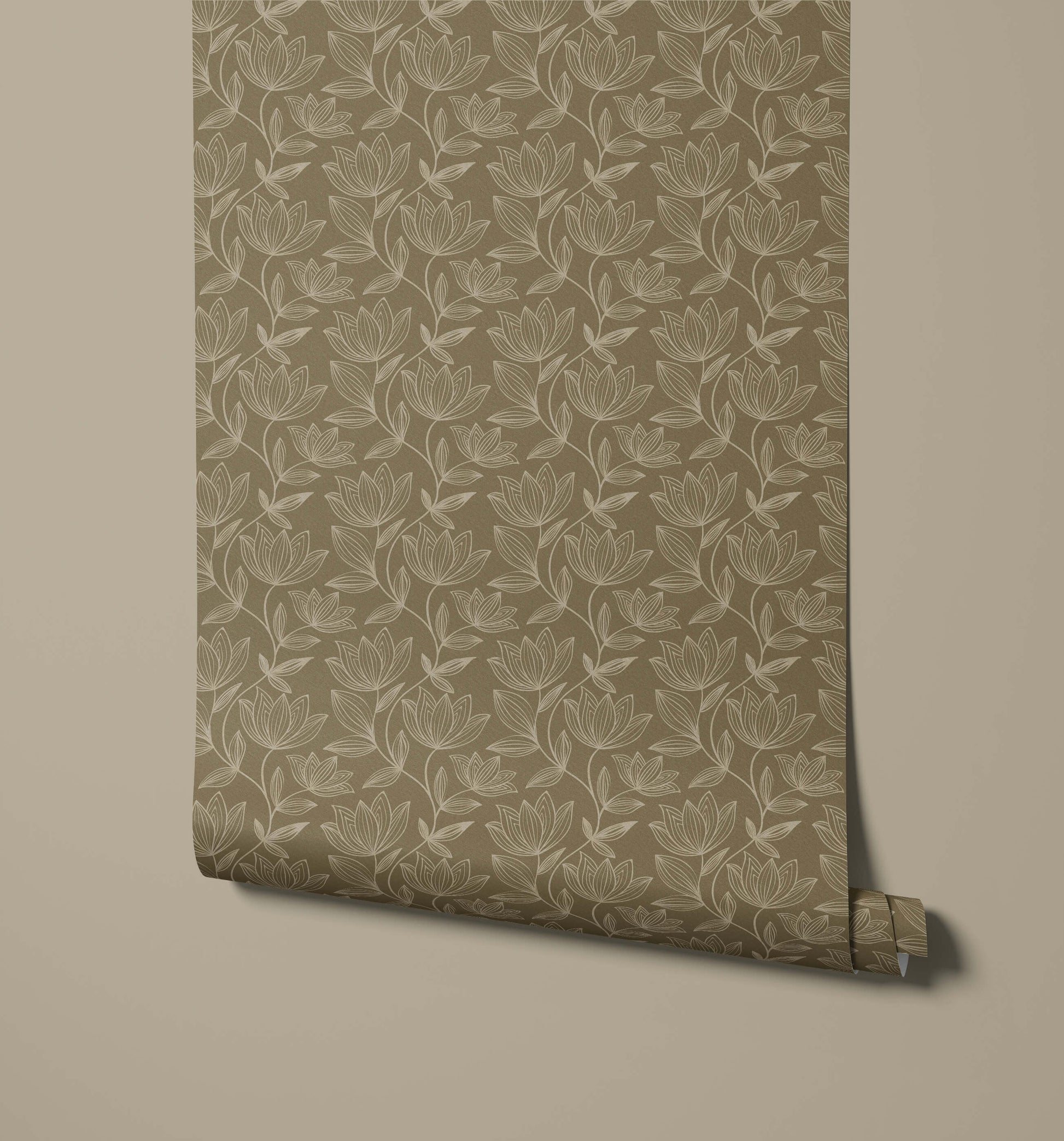 The subtle execution of the line art lotus wallpaper ensures that the visual impact is sophisticated and not overpowering. The continuous, undulating flow of the stems and flowers lends a natural, calming movement to the wall surface, making it an ideal choice for creating a tranquil and thoughtful atmosphere. This design is perfect for adding graceful definition and an artistic touch to bedrooms, dining rooms, or spaces dedicated to relaxation.