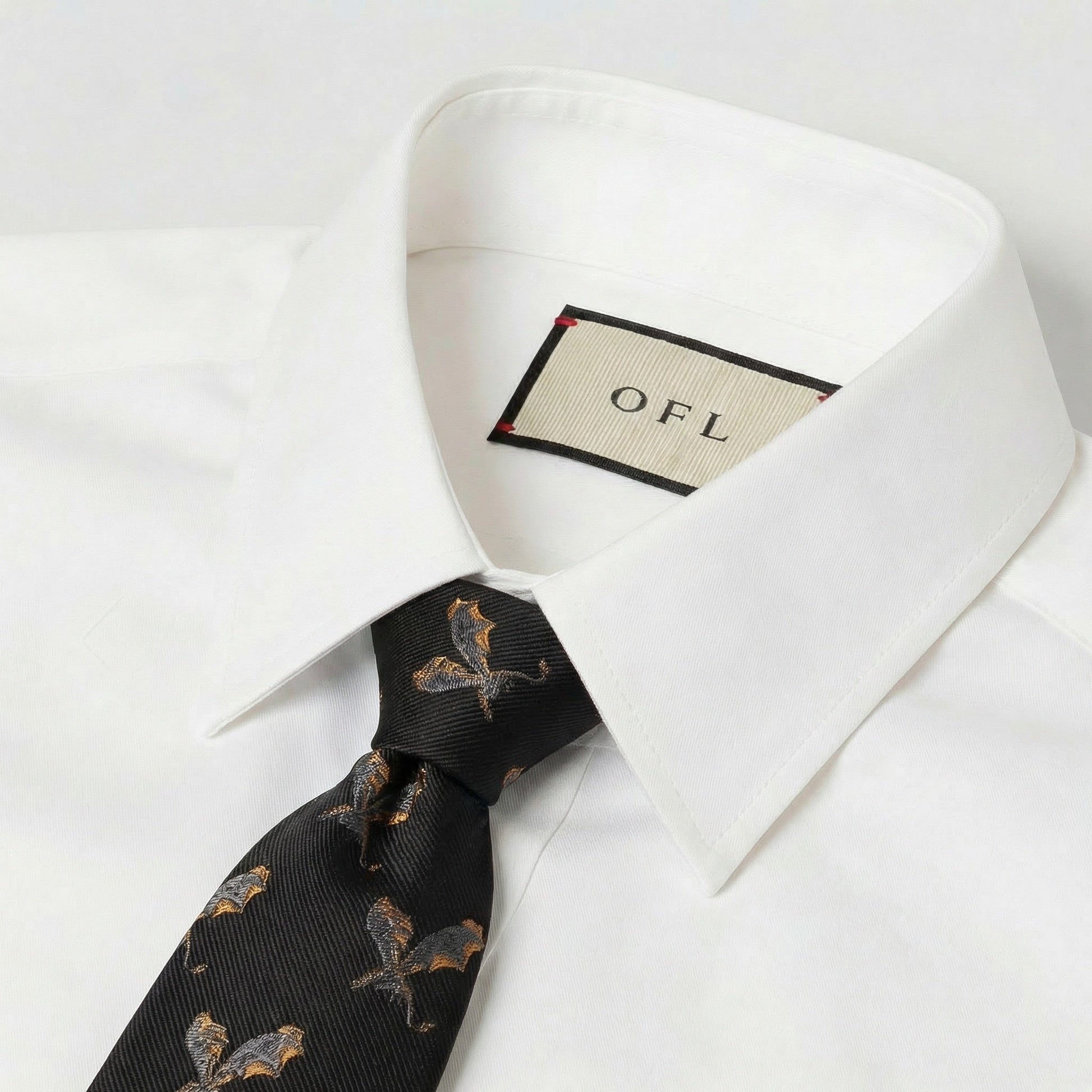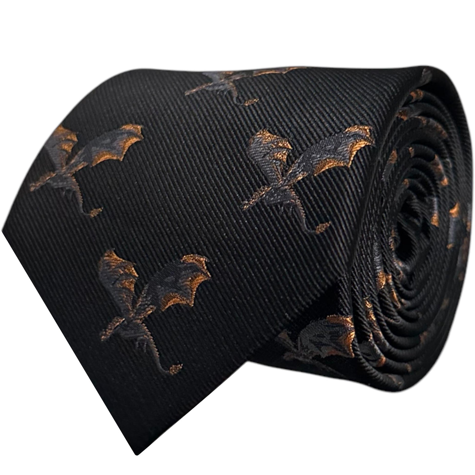 A strong black tie featuring intricate fire dragon embroidery, adding a fierce and fiery touch to your ensemble.