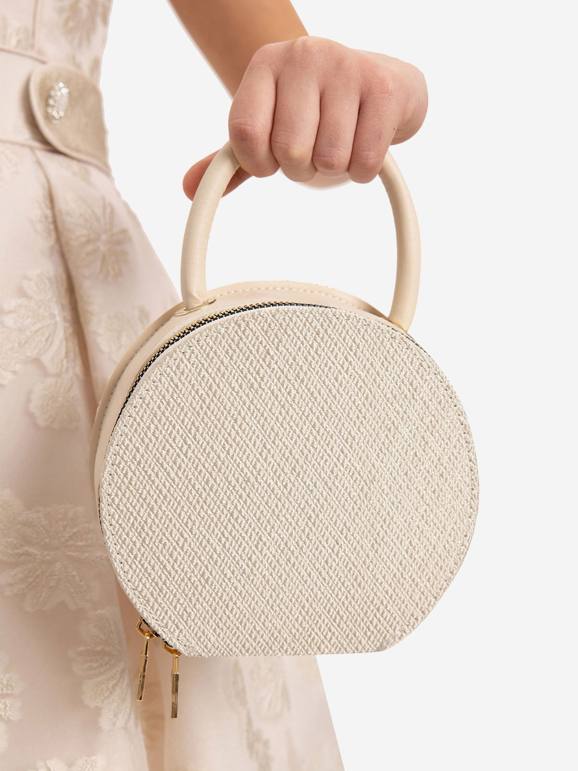 Dress & Fleur combine traditional abstracts with innovative materials for a sophisticated twist. This girls dress with a matching bag in beige embodies the label's passion for exquisite pieces.