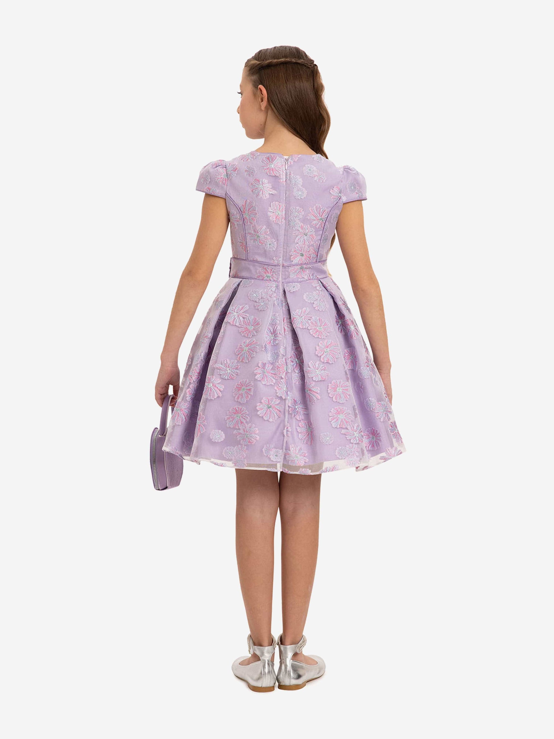 Dress & Fleur combine traditional abstracts with innovative materials for a sophisticated twist. This girls dress with a matching bag in purple embodies the label's passion for exquisite pieces.