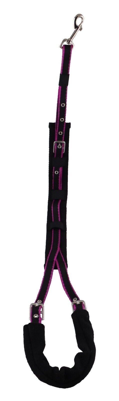 The fleece covered dock has buckle & eyelet adjustments as does the trigger end which fits the saddle.