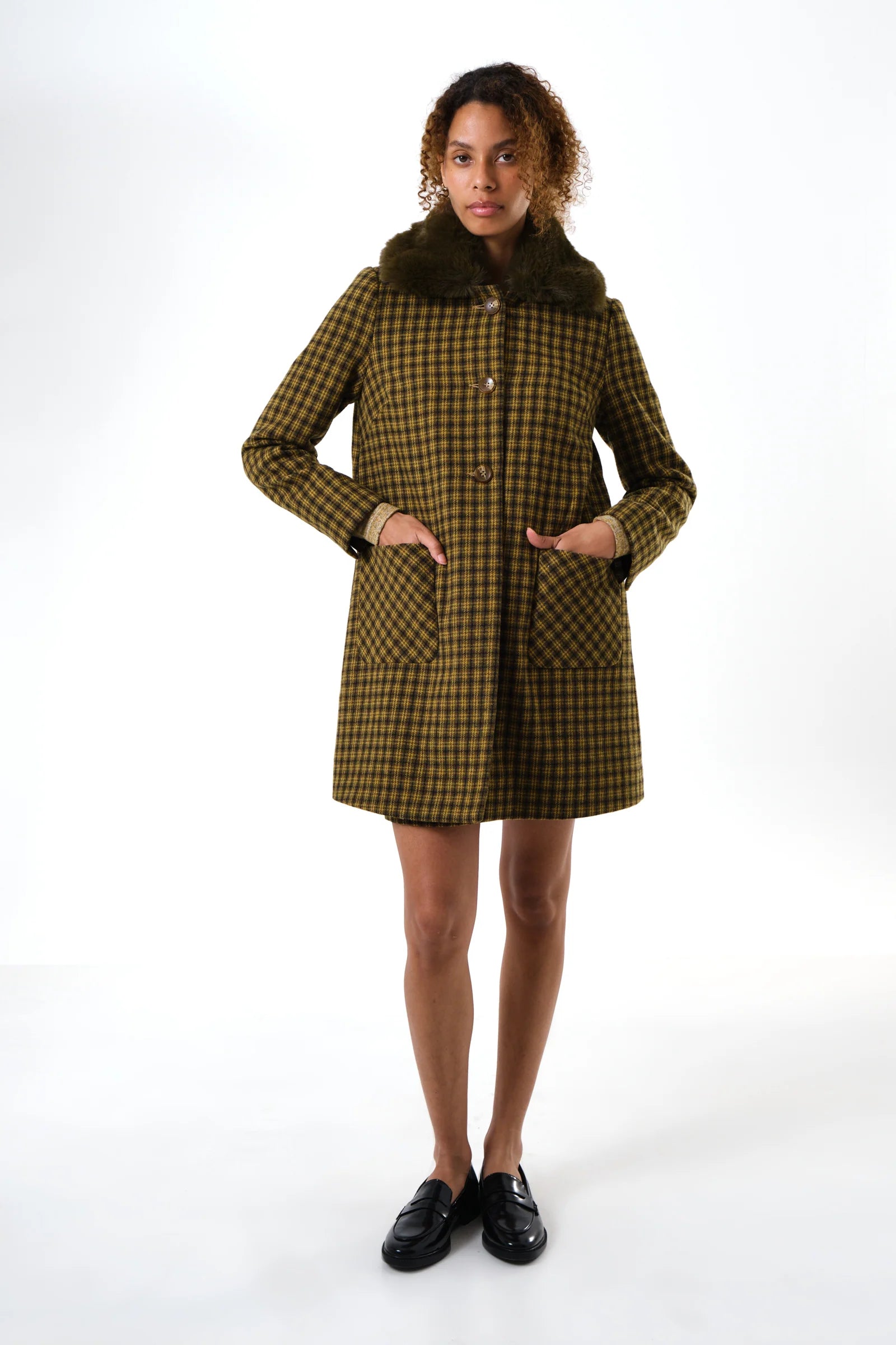 Dryden Wyoming Check Faux Fur Collar Coat - Mustard