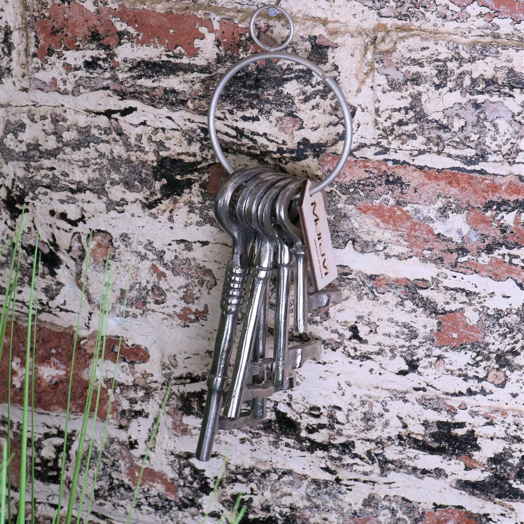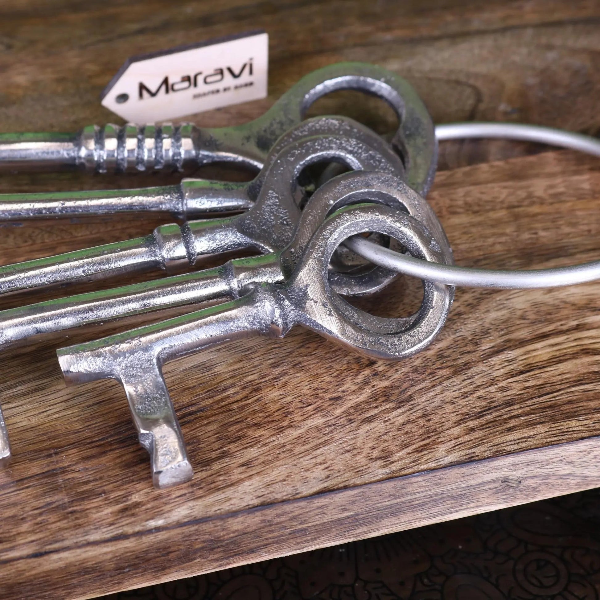 Elevate your home décor with this stunning vintage-inspired hanging bunch of keys ornament. Expertly crafted from premium aluminium, this piece features a chunky hanging ring that enhances its rustic charm. It's the perfect addition to any room in your home that needs a touch of elegance.