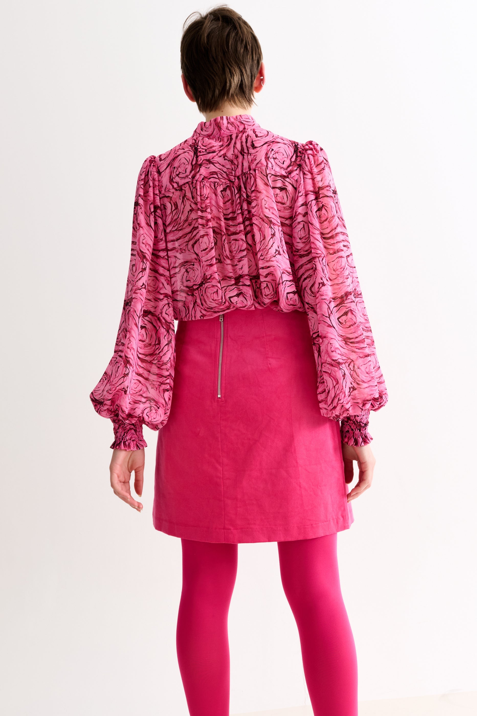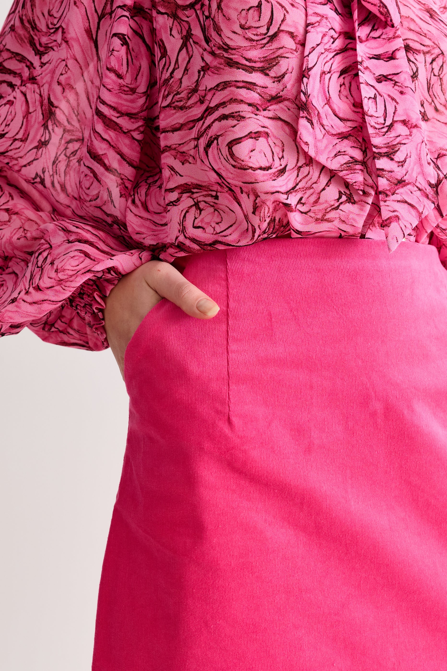 A flattering A-line mini, crafted in sturdy cotton baby cord with a slight stretch to allow plenty of comfort and movement. This bright pink will brighten your wardrobe Wear it classically with a crisp white shirt or a favourite jumper.