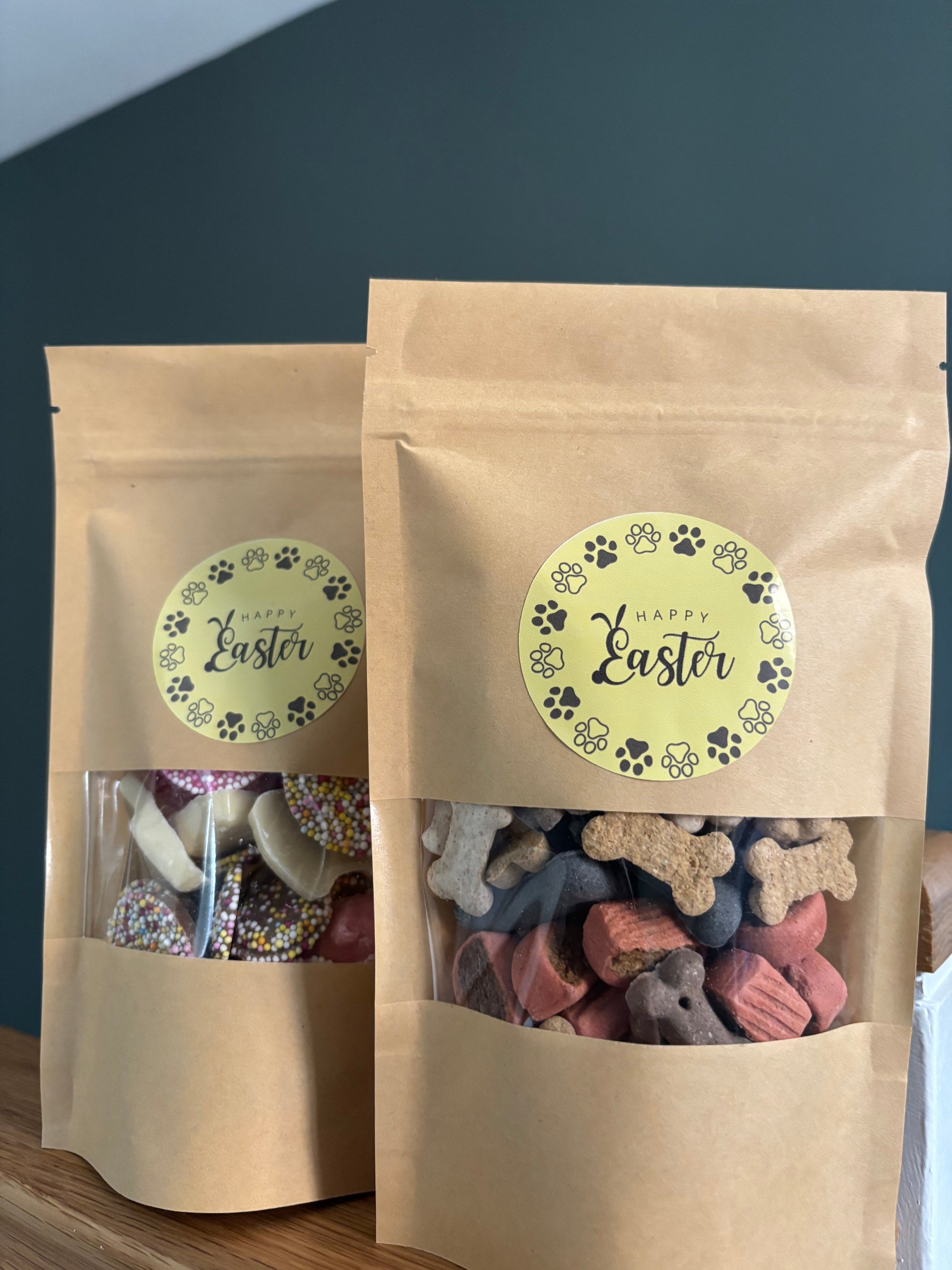 These treat pouches are the perfect gift for your furry friends! Choose from biscuits or chocolate (dog safe) treats.