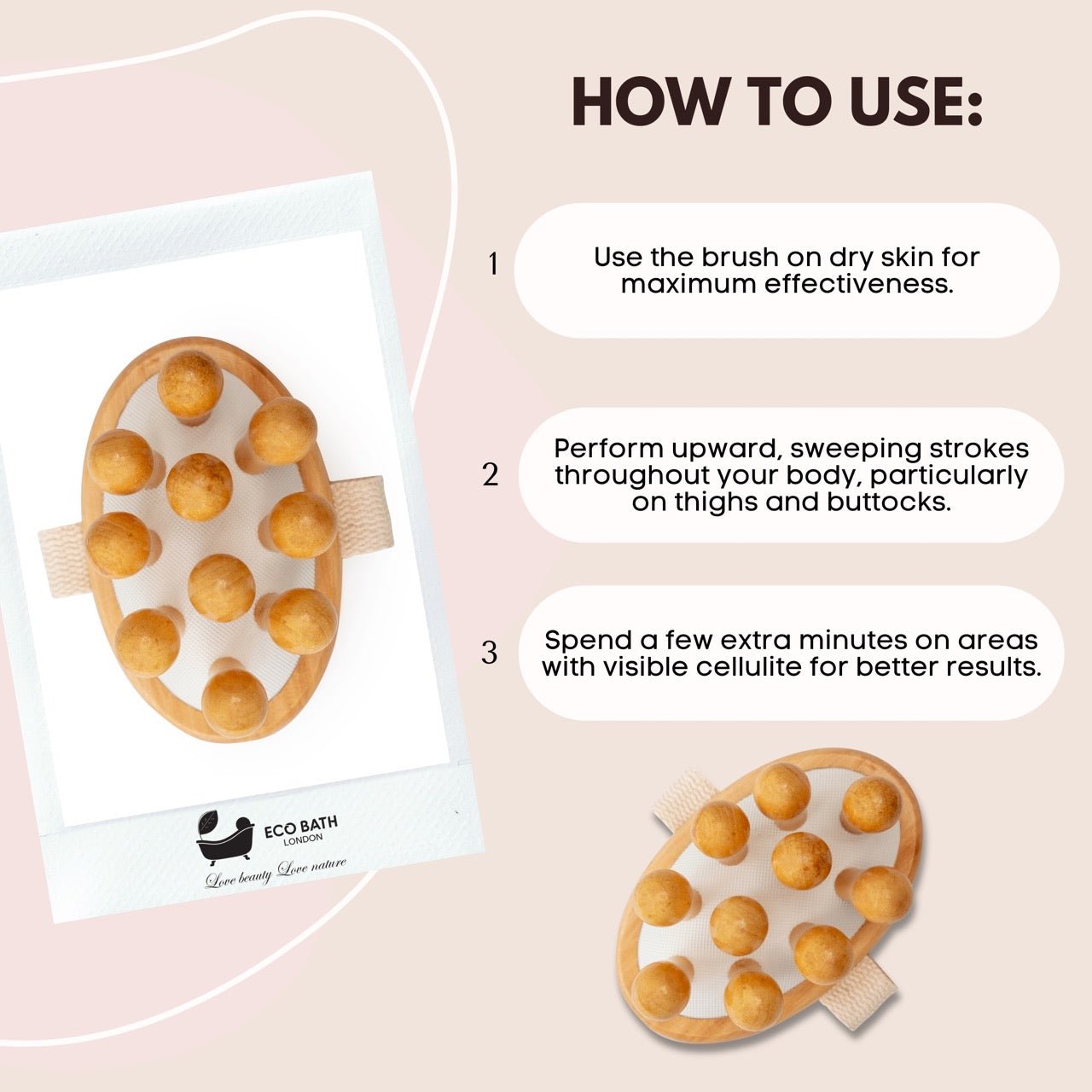 Eco Bath London is dedicated to providing high-quality, natural products that are environmentally friendly and sustainably sourced. The Cellulite Hand Brush is made from eco-friendly materials, ensuring a safe and natural way to care for your skin. Its compact and lightweight design makes it convenient for home use or travel, allowing you to maintain your cellulite treatment routine wherever you go. Embrace the benefits of natural massage with the Eco Bath Cellulite Hand Brush and achieve smoother, more toned skin.