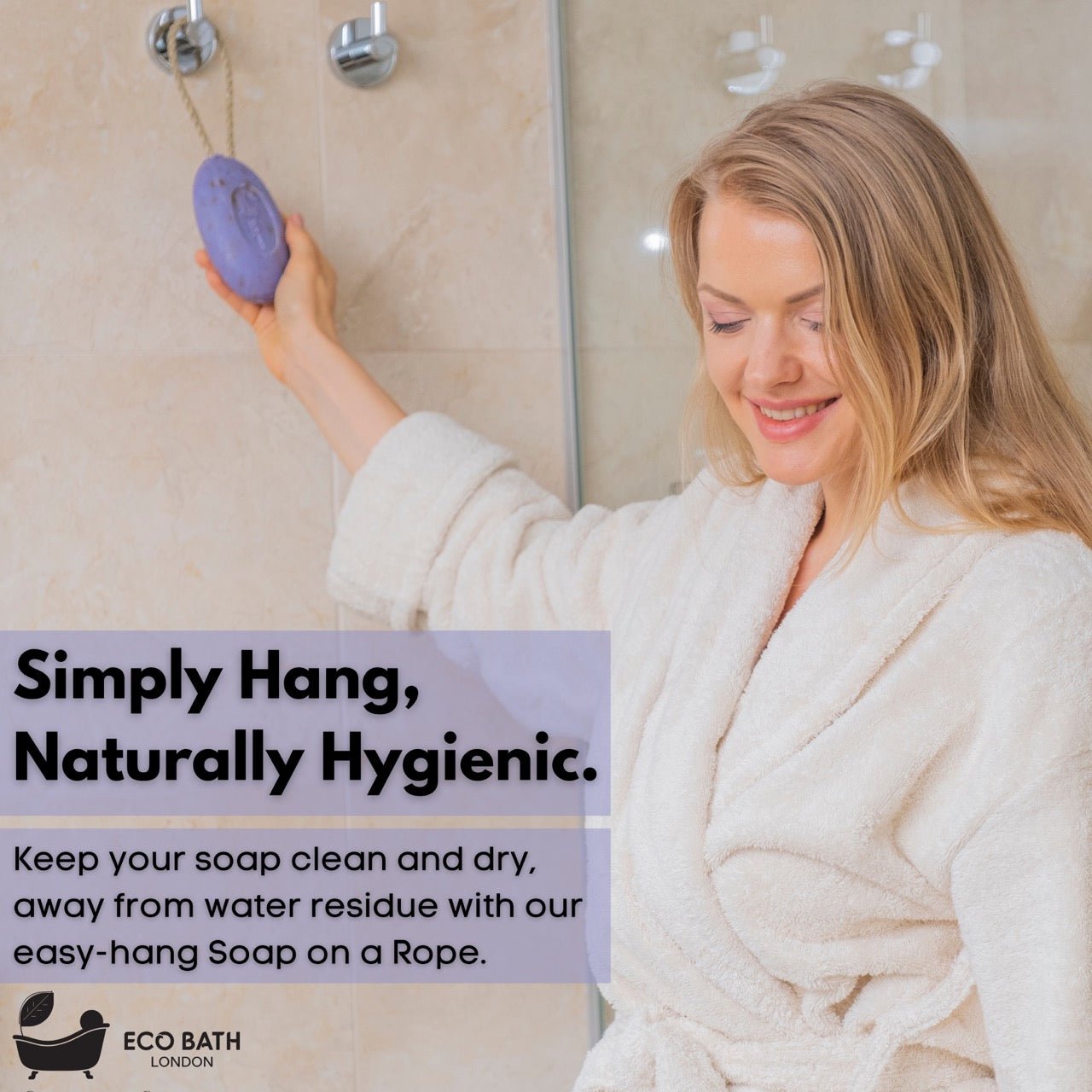 - PORTABLE AND CONVENIENT: Compact and lightweight, the Eco Bath London Lavender Soap on a Rope is perfect for home use or travel, allowing you to maintain your skincare routine wherever you are.
