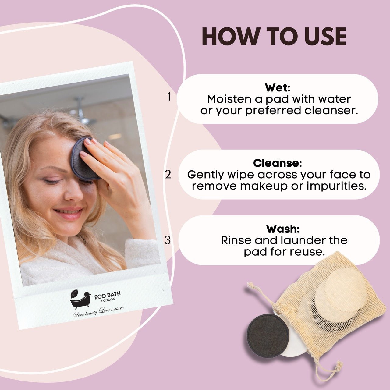Eco Bath London is committed to providing high-quality, sustainable products. Our reusable makeup remover pads are washable and designed for long-term use, making them a cost-effective and environmentally friendly solution for your skincare needs. This set of 12 pads comes with a handy storage pouch, ensuring easy organization and portability.