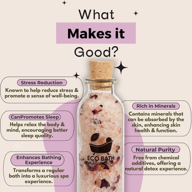 - ECO-FRIENDLY PACKAGING: Packaged in environmentally friendly materials, this Rose Himalayan Bath Salt makes an excellent gift for eco-conscious friends and family. Enjoy the benefits of natural, sustainable products with Eco Bath London.