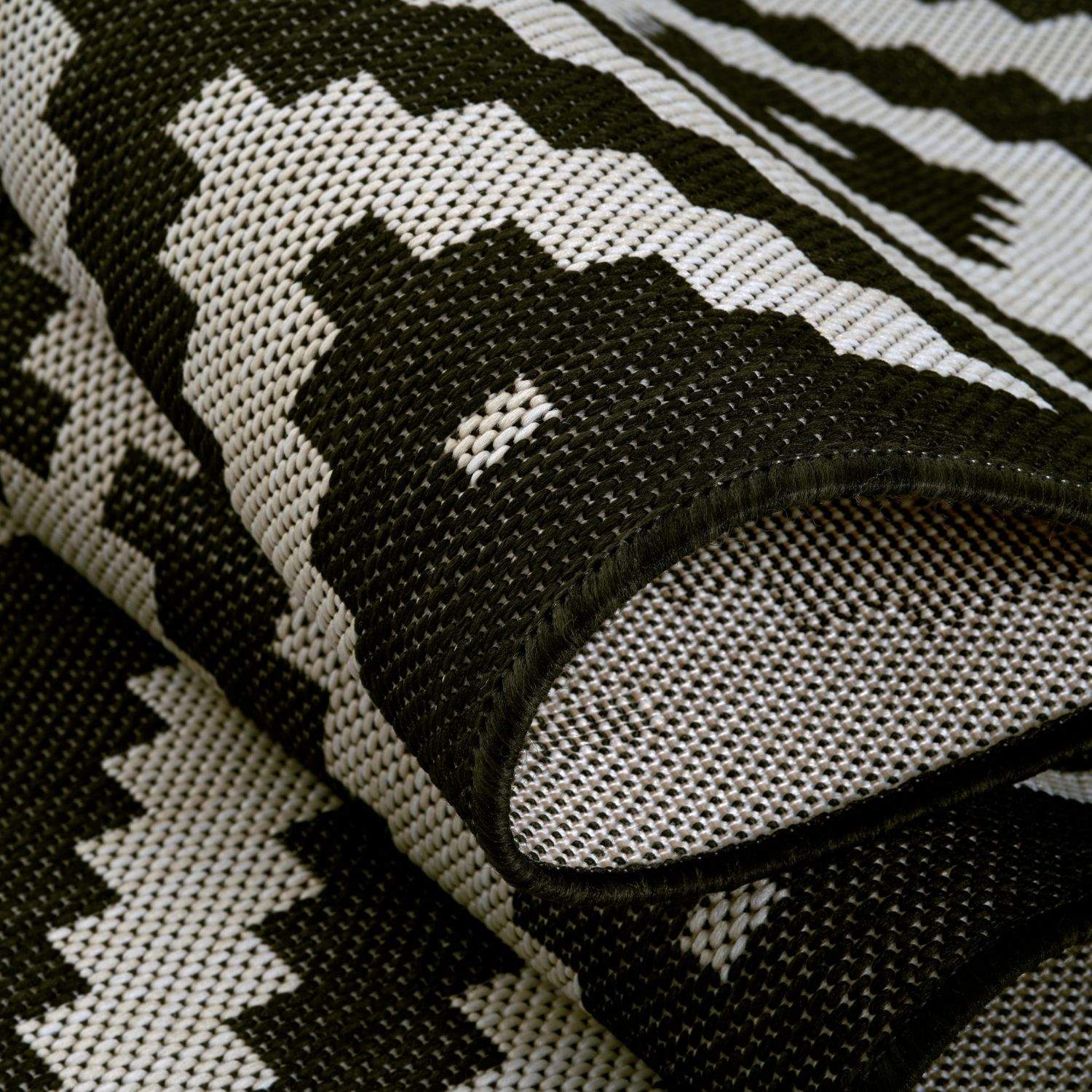 Introduce a modern, graphic touch to your spaces with the Ecology Outdoor Rug Black. Its black-and-white diamond pattern creates subtle contrast that works well in both indoor and outdoor areas, from patios to living rooms.