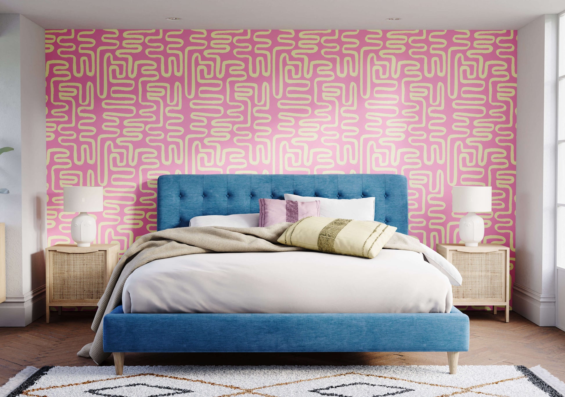Element is a playful squiggle wallpaper that pairs perfectly with contemporary styling. With a simple two colour palette to compliment the bold design, this is a versatile wallpaper that would suit a range of spaces.