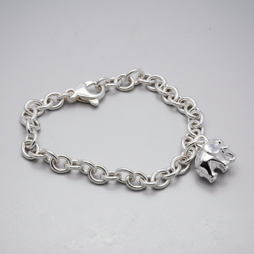 - Classic Charm Bracelet: Attach your Elephant charm to a chunky, solid silver bracelet (hallmarked for authenticity) for a timeless look.