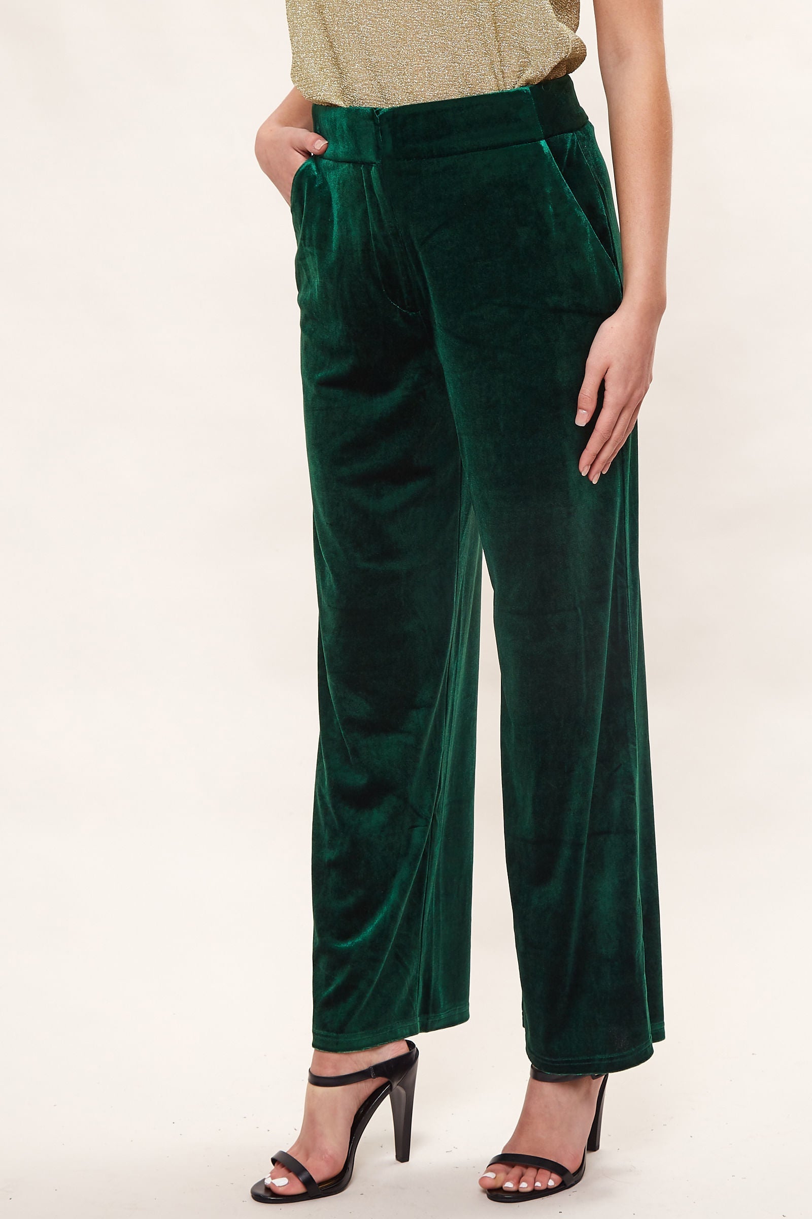 Elina Velvet Straight Leg Trouser - Green