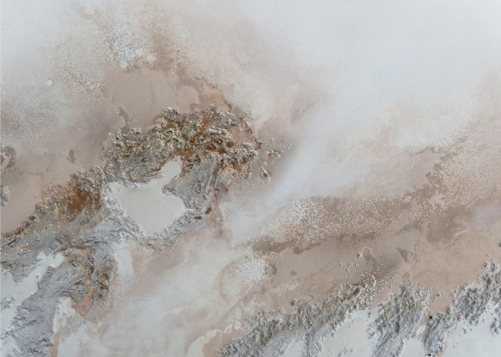 This framed canvas presents a refined close-up of textured beige and grey tones, beautifully accented with delicate gold glitter details. The intimate perspective reveals intricate patterns and subtle shimmer, offering an elegant touch of depth and luxury to elevate any space.