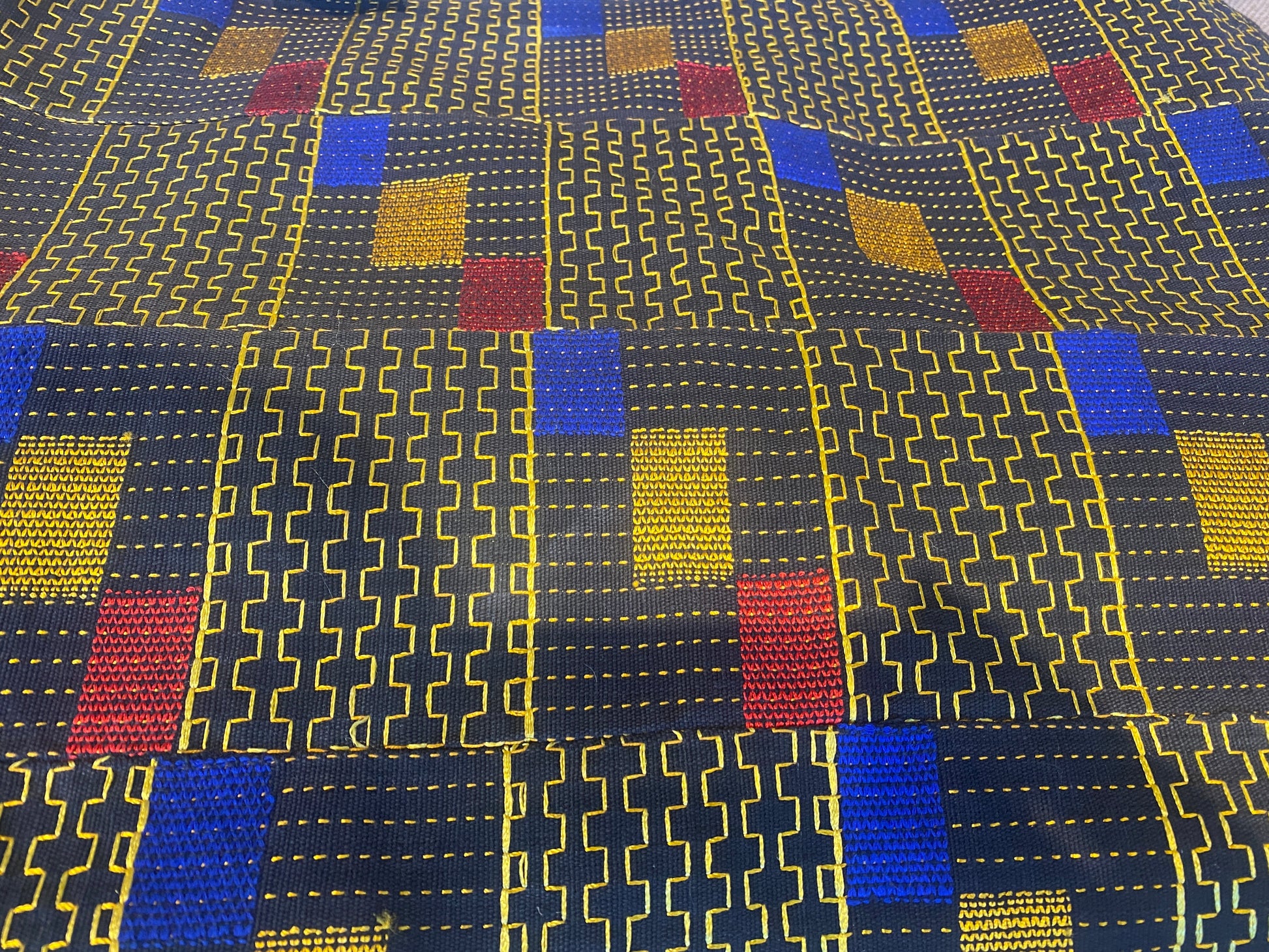Traditional material used in Ghana local artisans using a wide range of colours. All hand stitched.