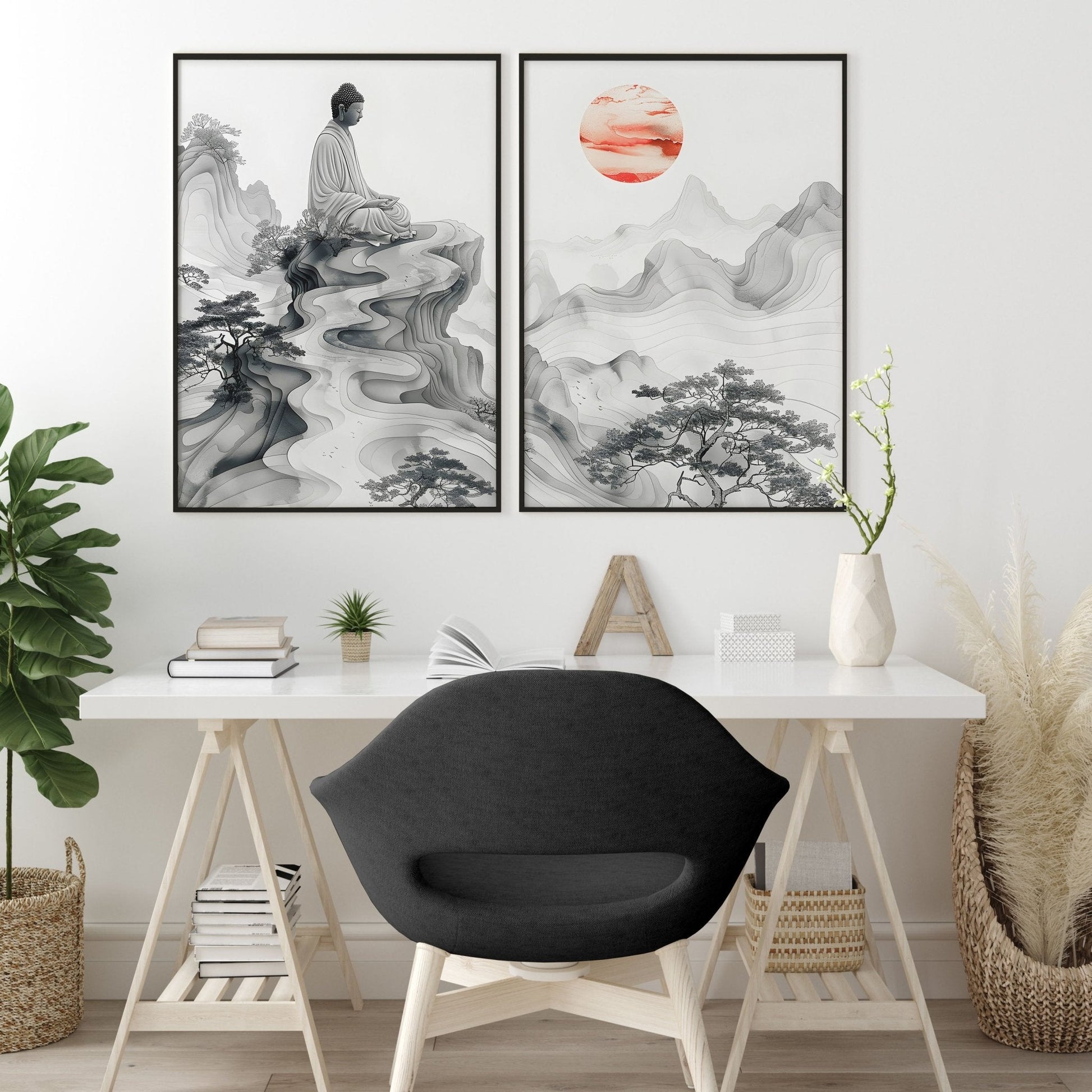 - You will receive a Set of 2 Asian Inspired Wall Art Prints for your office wall art.