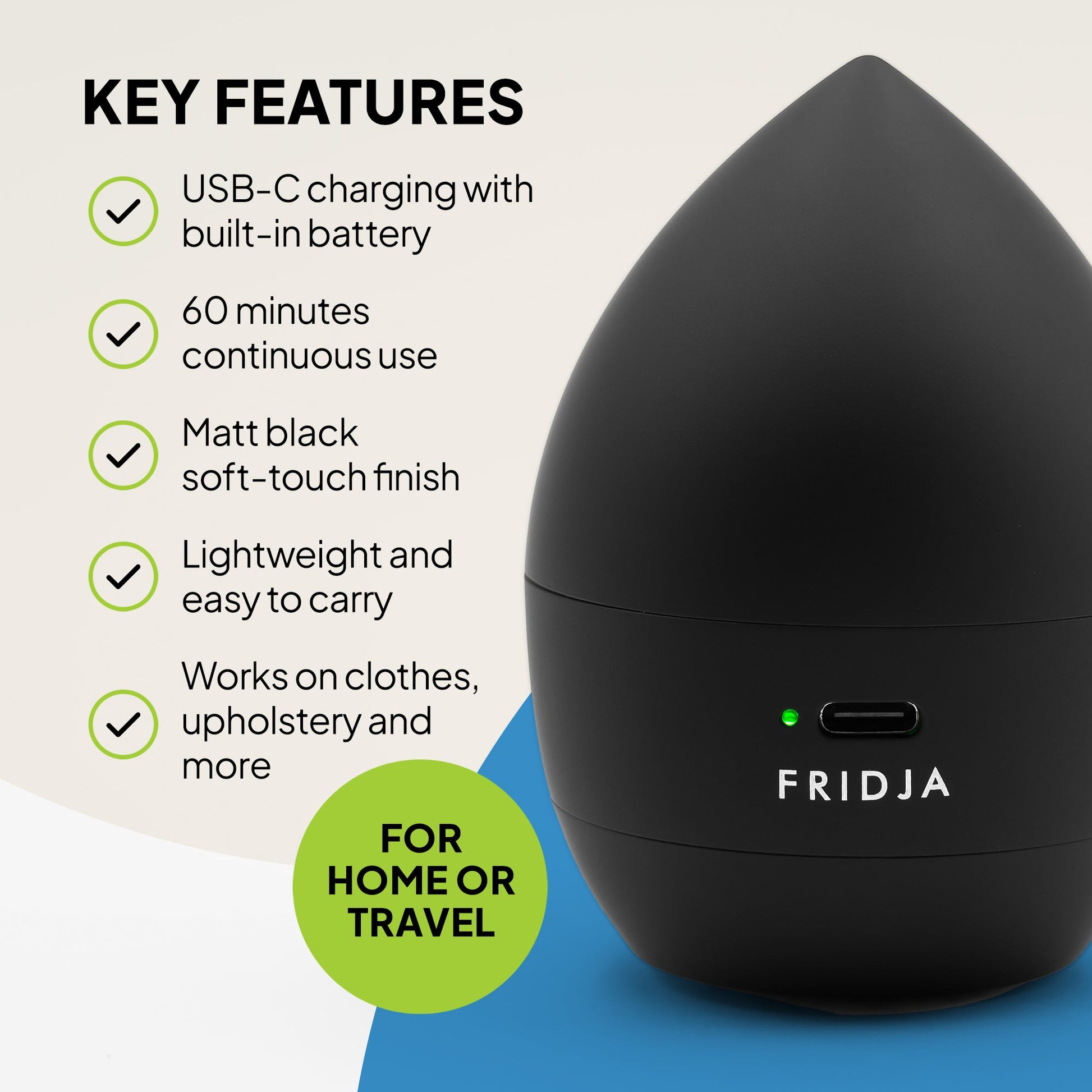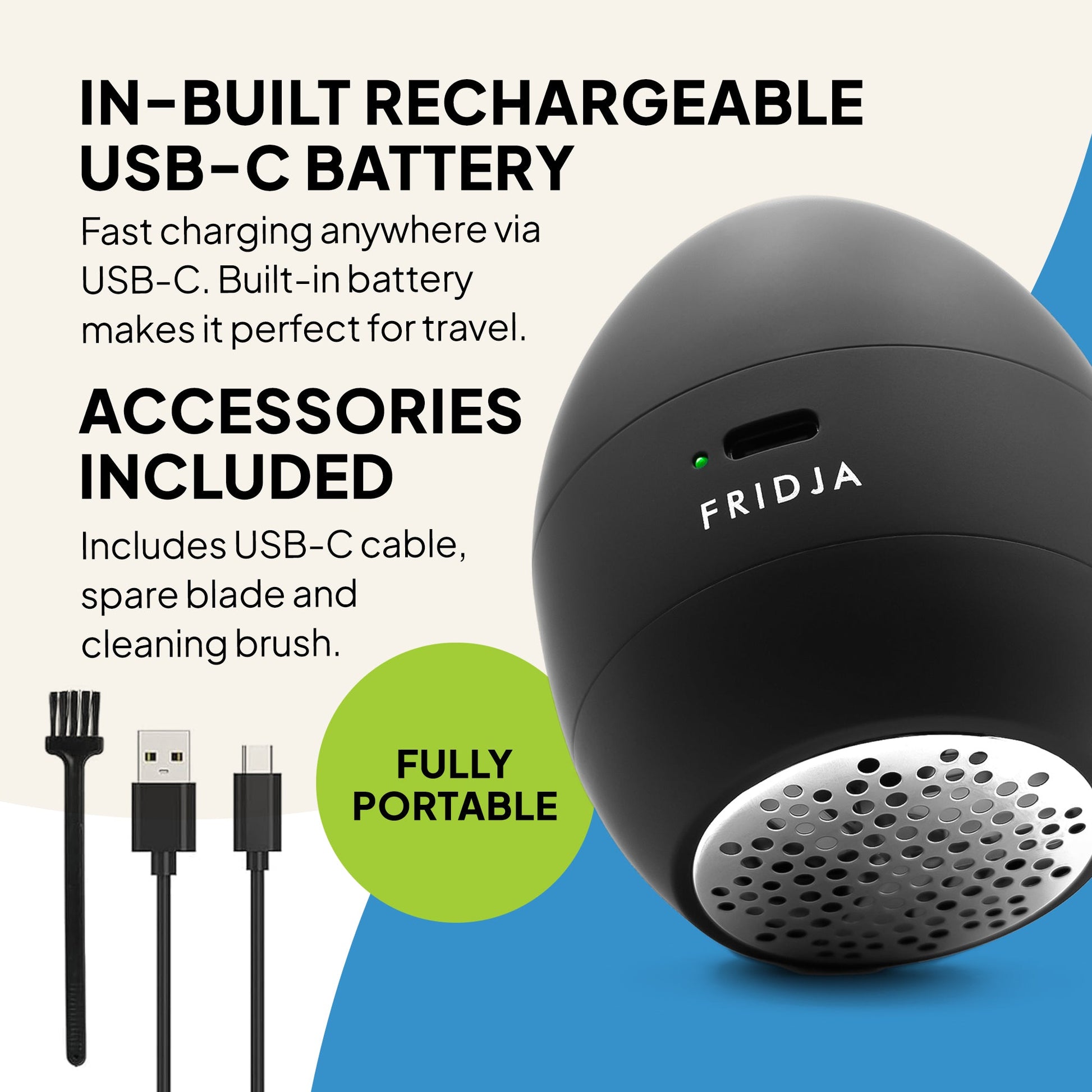 The Fridja f40 Fabric Shaver brings new life to old favourites. It gently removes bobbles and surface fuzz from knitwear, coats and upholstery, leaving fabrics smoother, cleaner and more refined.