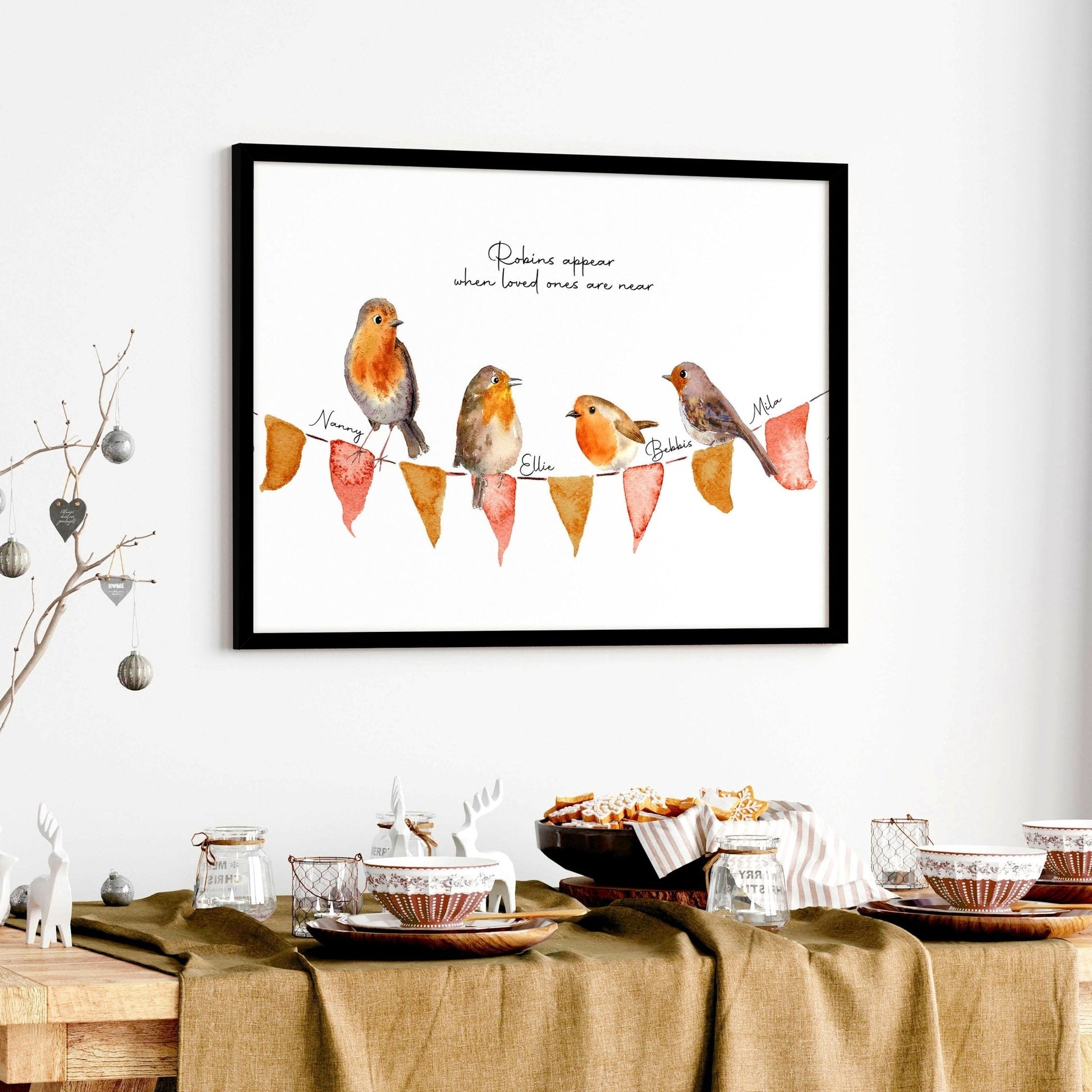 Decorate your Living room with this Personalized Family Wall art print. Display 1-5 names of your close family with my beautiful custom Robins family print!