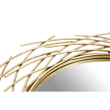 This wall mirror will add a touch of glam to the living room with clean intersecting lines creating a sunburst design. A rounded mirror rests inside the quirky frame and contrasts the champagne gold finish.