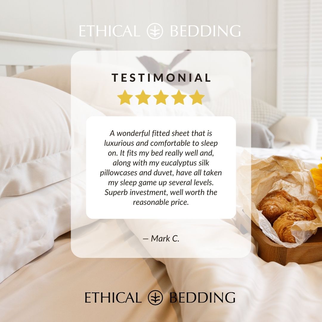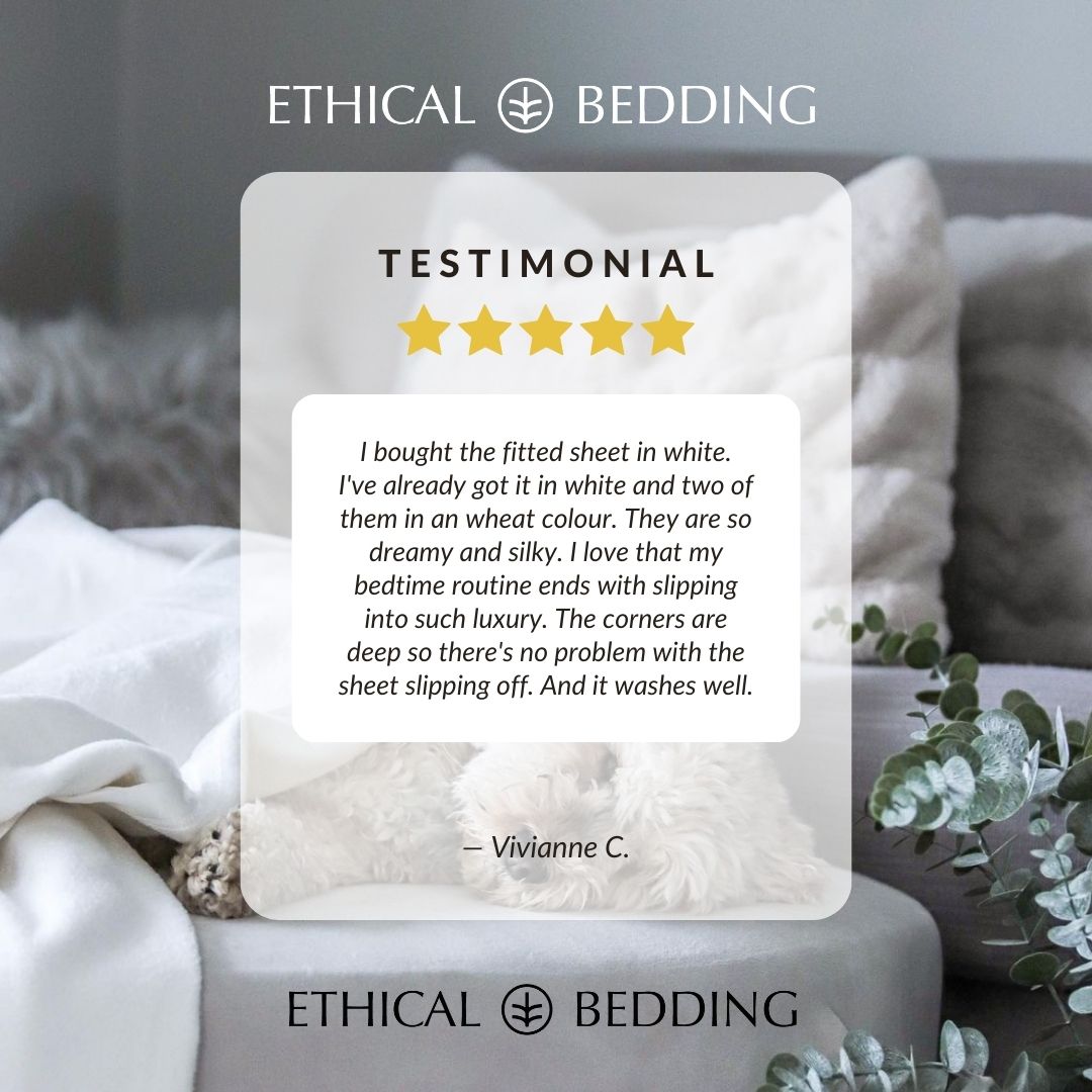 The unique, luxurious feel of eucalyptus silk is second to none. Soft to the touch, our sheets provide the perfect balance of comfort and relaxation. But beware, once you're in bed, you may never want to get up! In addition to Grey, our Eucalyptus Silk Fitted Sheets are also available in White, Wheat, Forest Green, Rose, and Sky Blue.