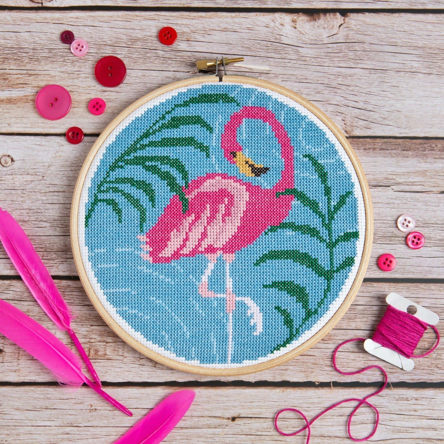 Take a break from the daily grind and get lost in a world of pink and fluffy birds or share the love and gift it to a fellow flamingo fanatic. This kit will be a quirky addition to any collection of bird-themed crafts.