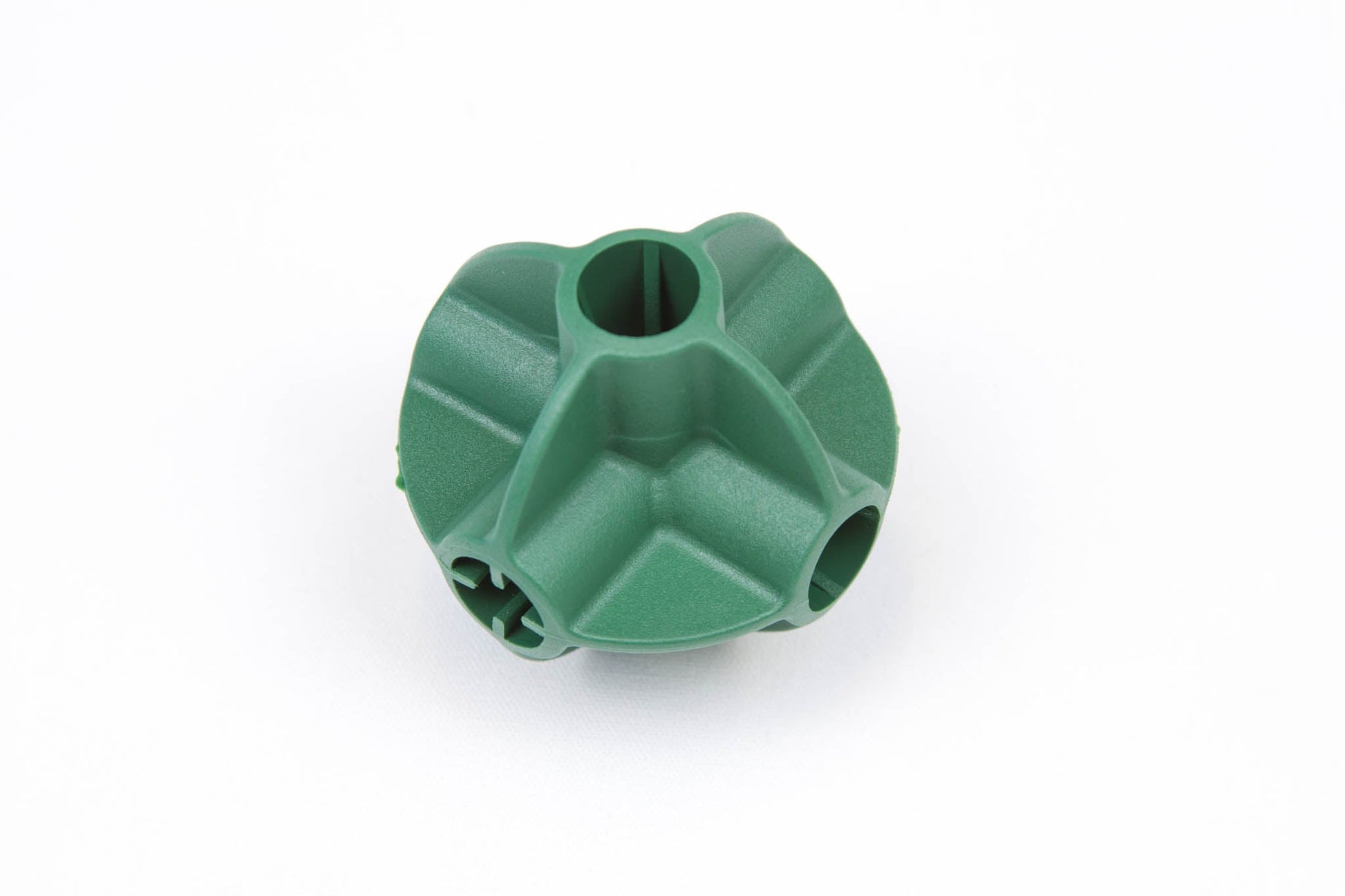 Used to make up fruit cages and netting frames to protect your crops. This simple-to-use ball takes bamboo canes or metal tubing up to ½" in diameter, and the tapered holes ensure a strong grip. Make any size frame required.