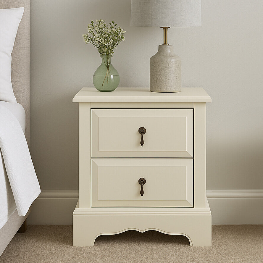 Introduce classic poise to your bedroom with the Florence Ivory Chest of 2 Drawers. This elegant Ivory Chest of 2 Drawers pairs sculpted detailing with a soft ivory tone for effortless refinement. Thoughtful storage meets timeless styling to elevate your bedside routine every day.