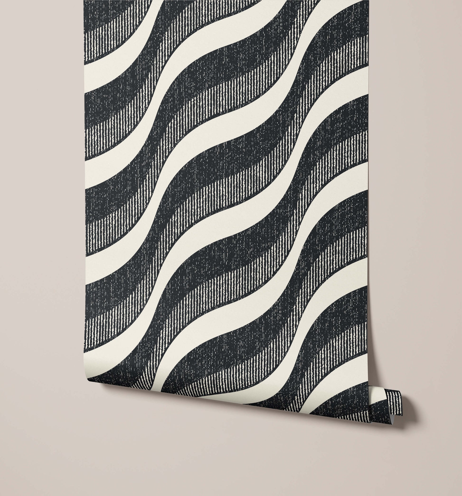 The style of this intriguing design is almost reminiscent of a vintage optical illusion, with simple black and white lines and shading combining to amazing effect. As a result of containing just two colours, this retro wave wallpaper is extremely flexible from a styling perspective, and will be a great fit for most spaces.