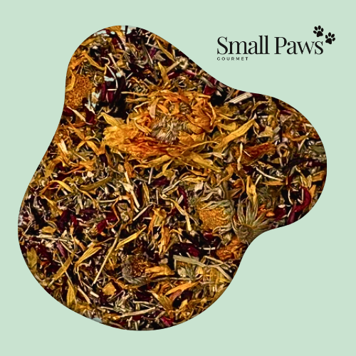 Enhance your small pet's natural environment with our Flower Mix with Cornflower. This unique blend not only adds a touch of colour to your pet's space, but also provides added nutrients and stimulation for foraging and play. A perfect addition to any small pet's habitat.