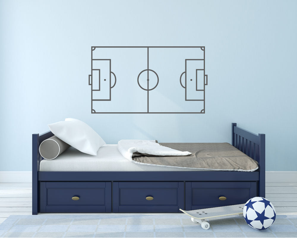 Transform your football nuts bedroom or playroom wall space with our Football Pitch Wall Sticker. Perfect for football fans, this high-quality, easy-to-apply decal brings the excitement of the game into your home. Made with durable, wall art specific vinyl, it’s hassle-free to install and remove without damaging walls.