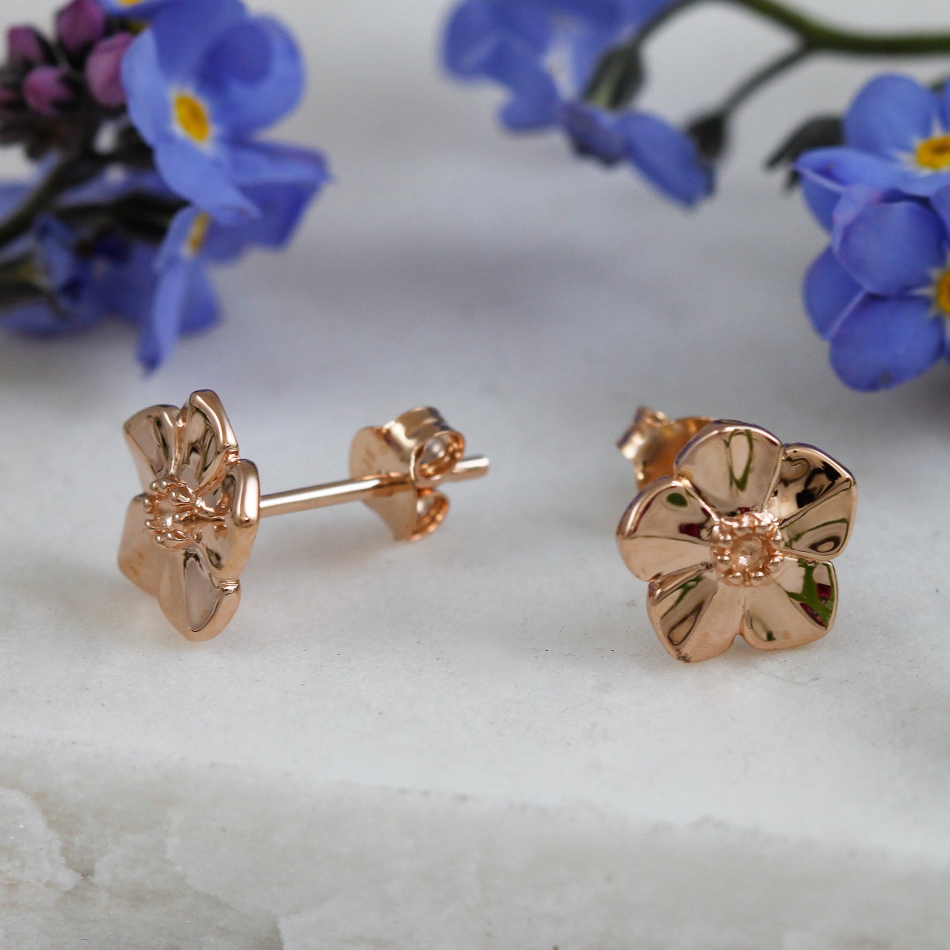 Expertly cast in solid sterling silver and plated with a thick 18ct rose gold vermeil, these pretty Forget-Me-Not stud earrings have a raised profile, making them as high quality as they are timeless and meaningful in their design.