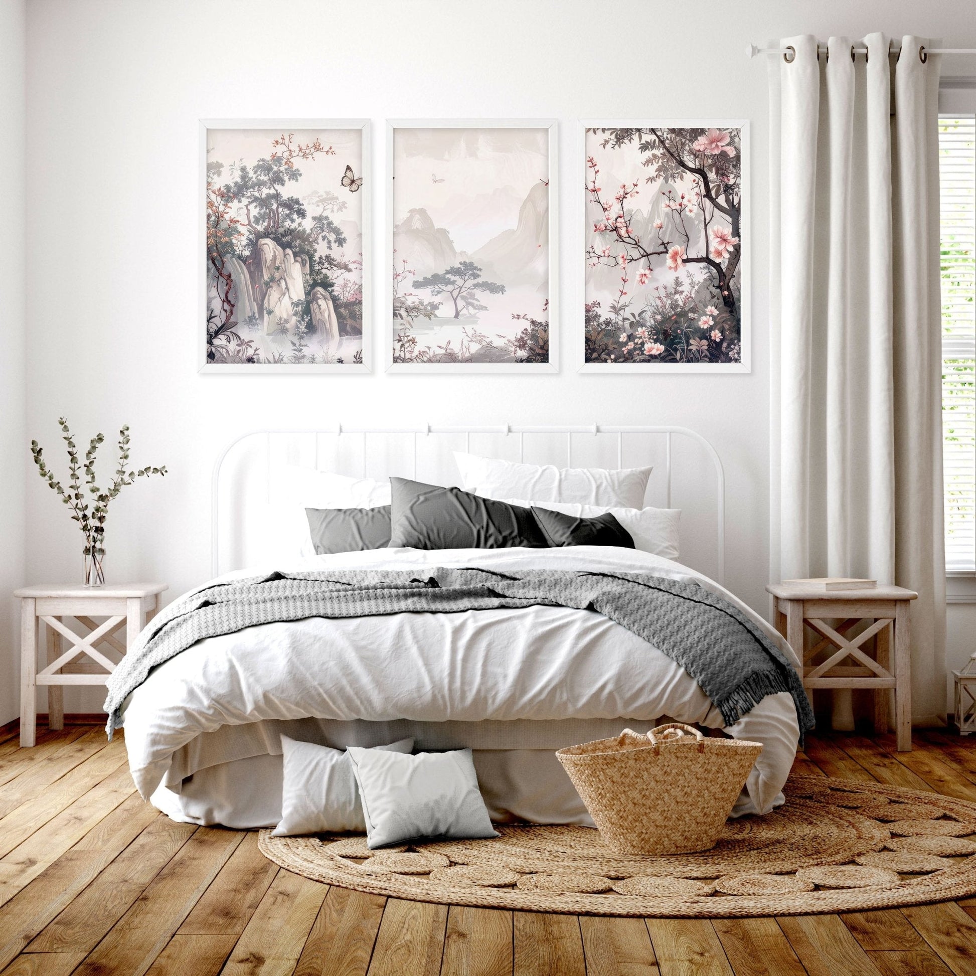 - You will receive a Set of 3 Chinoiserie Wall Art Prints for your Bedroom Wall Art.