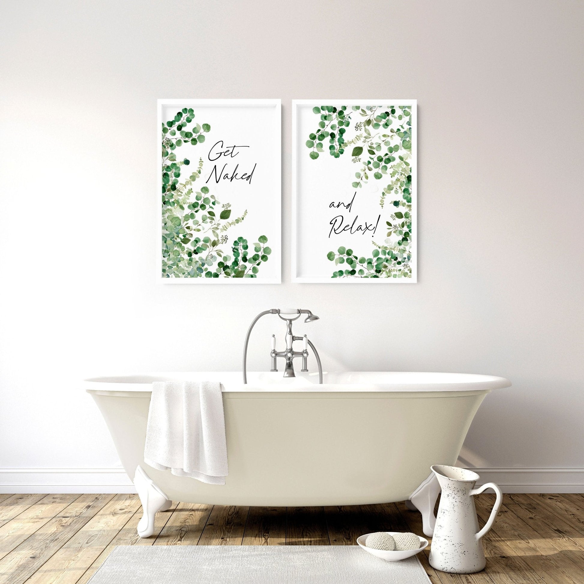 Indeed, these prints are a perfect addition to your bathroom decor. They show a whimsical message with the phrase "Get Naked and Relax." This playful statement adds personality and creates a fun and relaxed atmosphere in your private sanctuary.