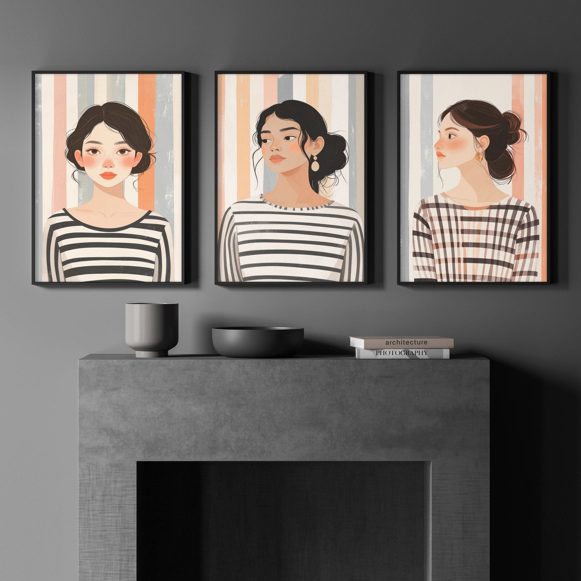 You will receive a Set of 3 Boho Women Wall Art Prints for your Living room art.