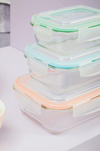 Made from robust borosilicate glass, each of these three glass containers are ideal for everyday use. With a small, medium and large version they offer plenty of food storag to keep kitchen organised and tidy. The assorted colour airtight lids keep the contents fresh.