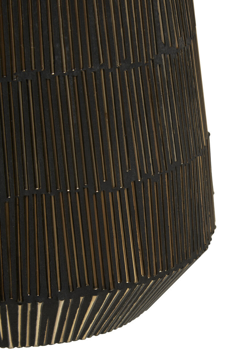 This small decorative candle holder is crafted from glass and given a chic antique gold finish. The tapered body of this glass candle holder has mosaic patterns around its body adding style and sophistication to any room in your home. The combination of antique warm tone, distressed texture finish, and mosaic patterns make the Gaia small glass candle holder a modish addition for contemporary abodes.